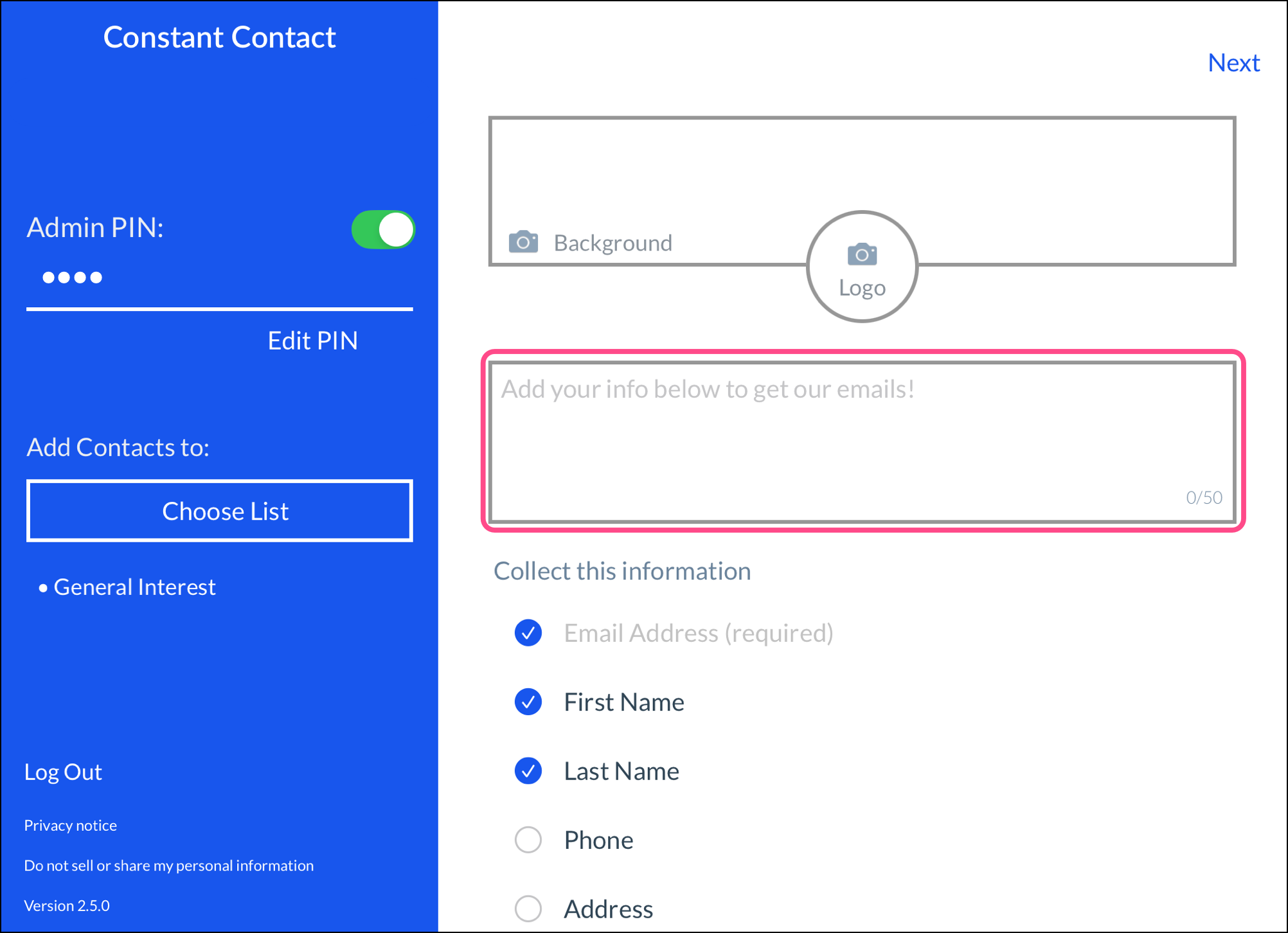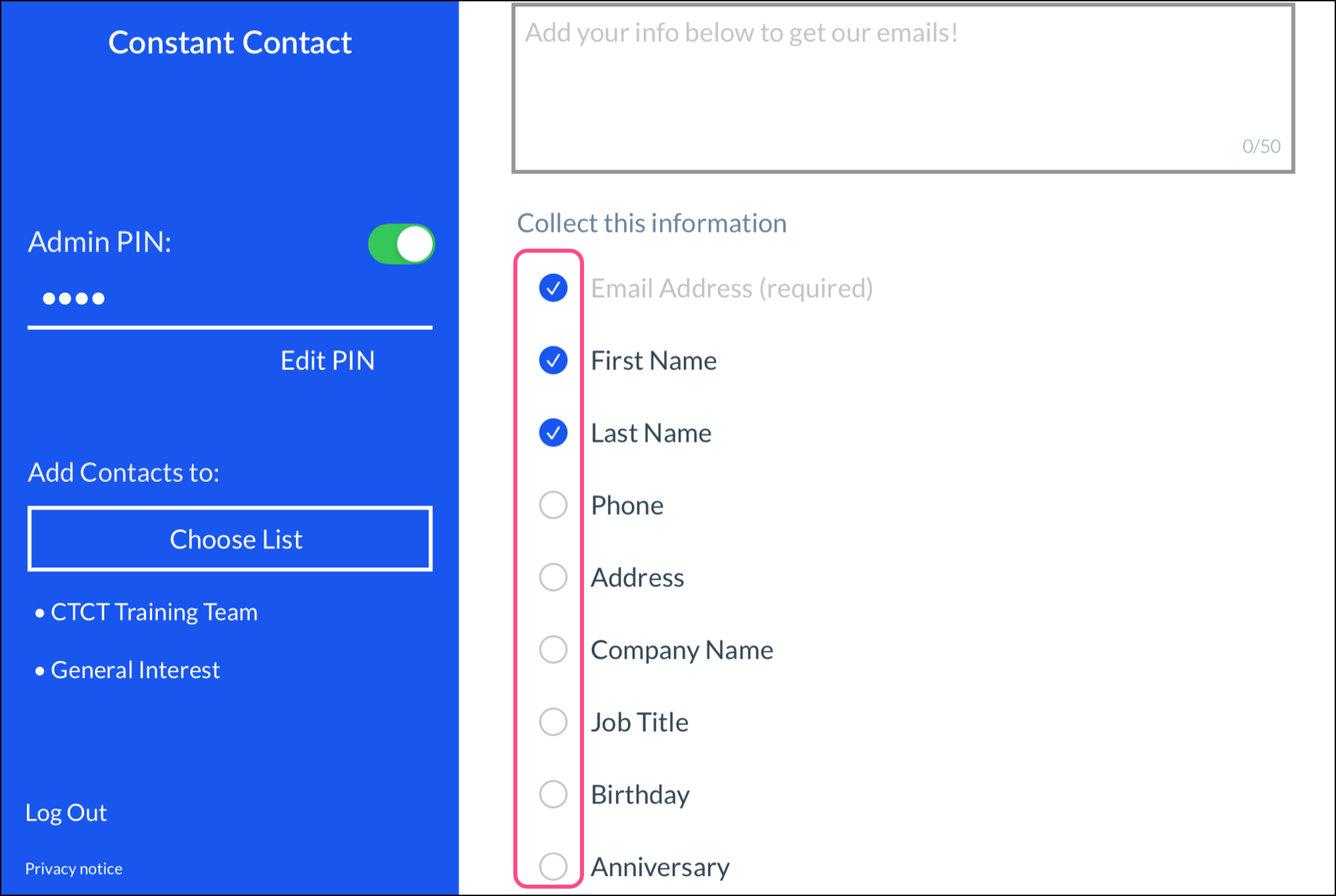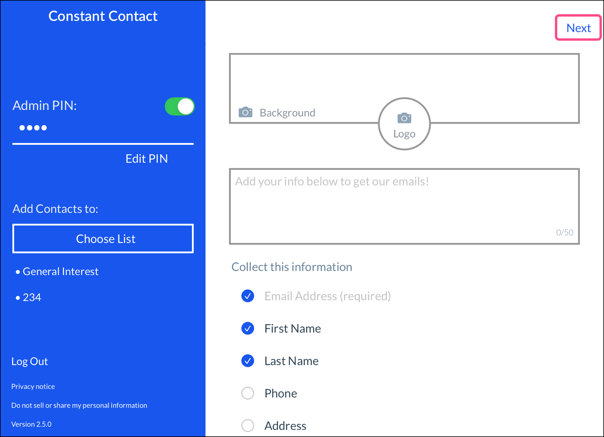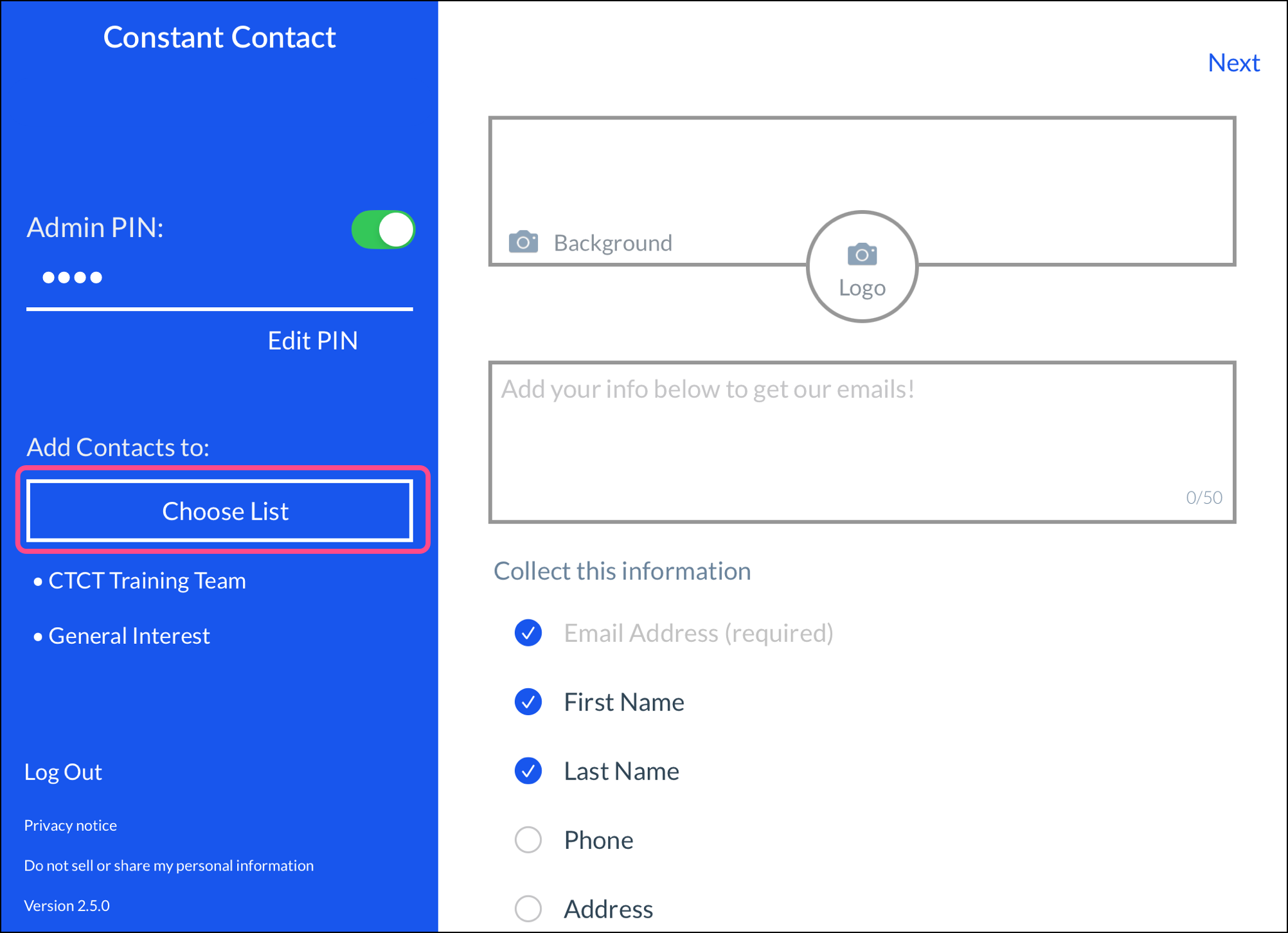 Note: If you're offline while collecting sign-ups, the contact information is still saved and syncs to your Constant Contact account once you're back online.