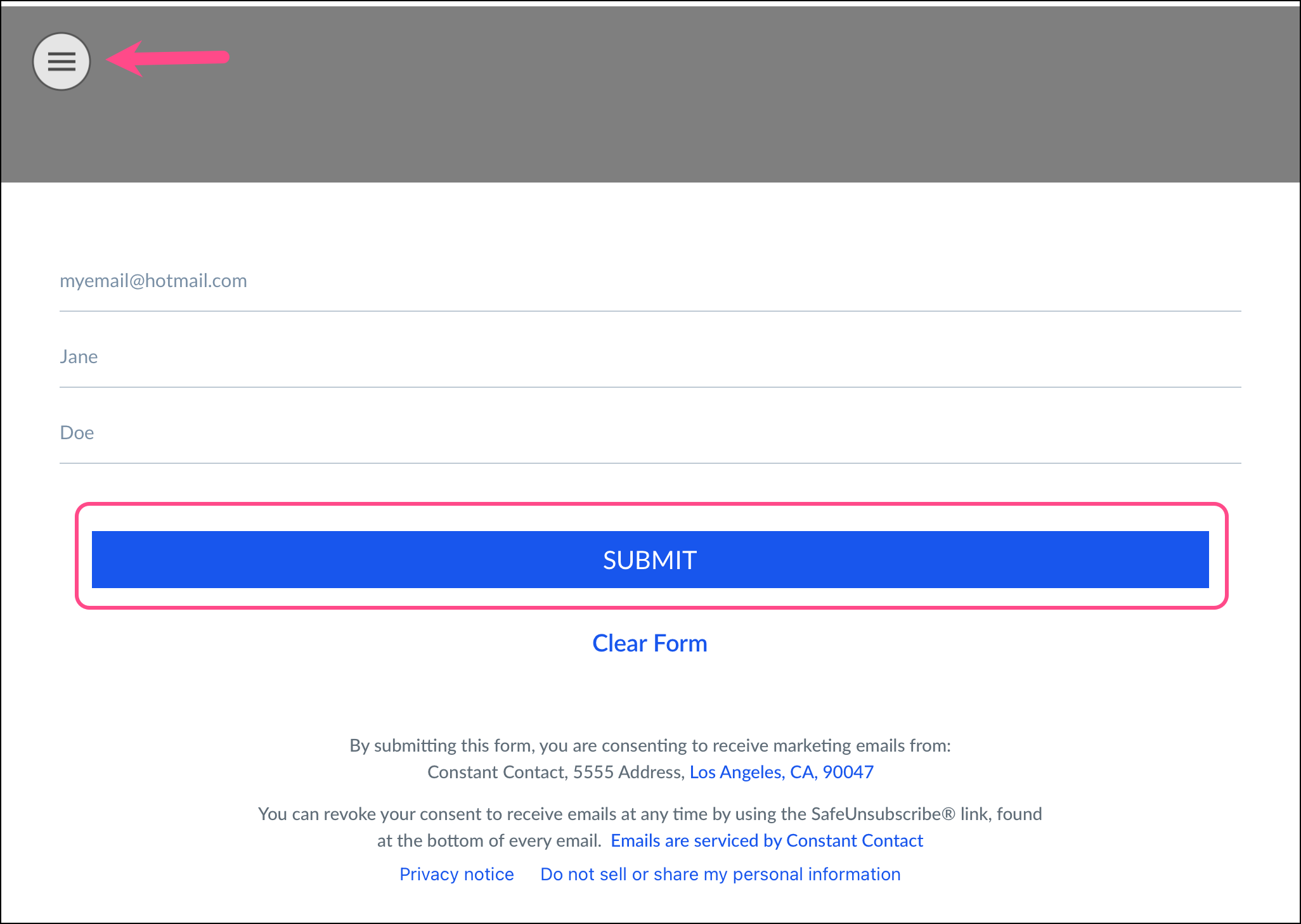 - Each person can enter their contact information and click the SUBMIT button.