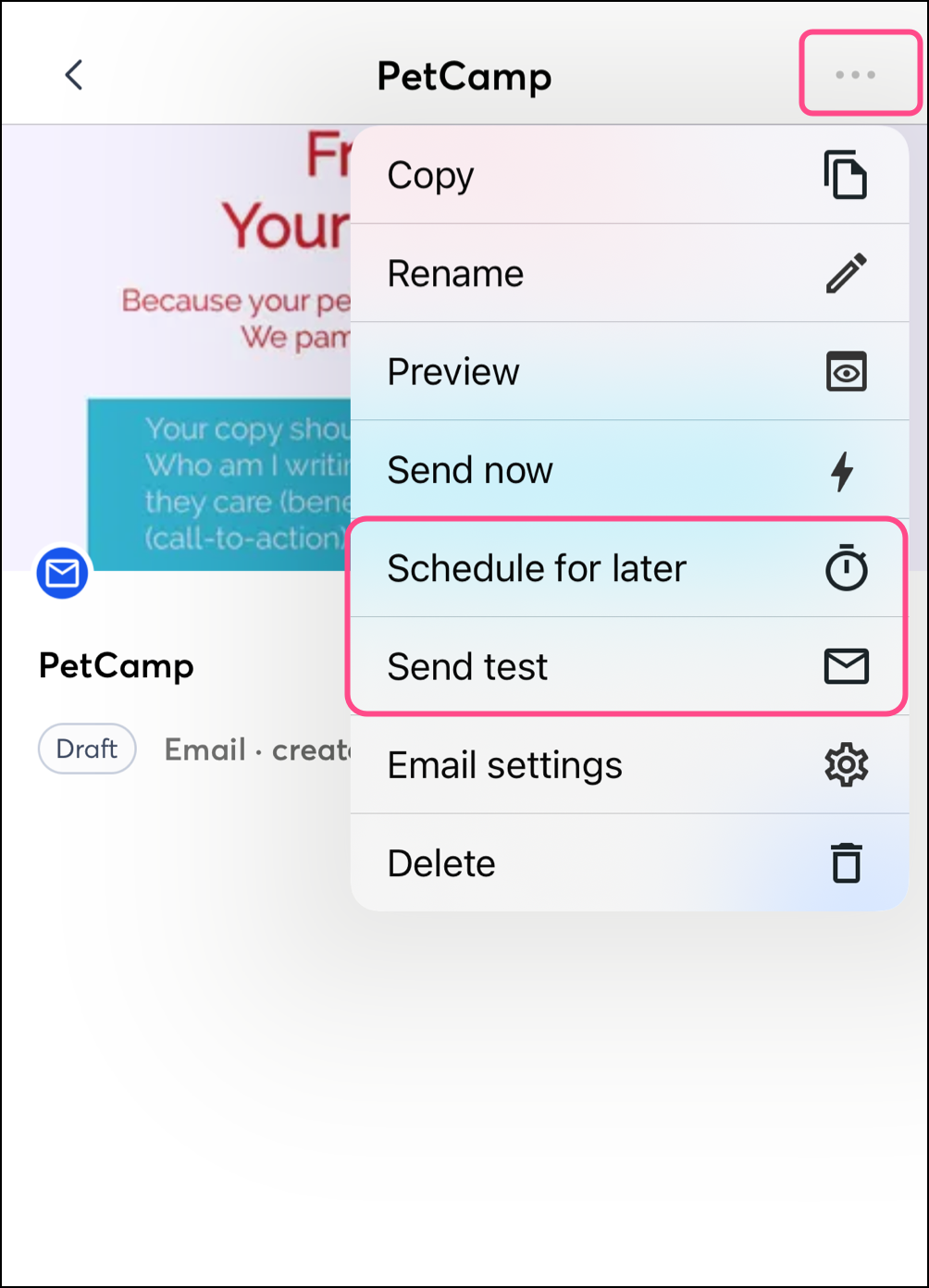 If you need to stop a scheduled email from sending and it hasn't been sent yet, you can unschedule it. On Android or iOS, complete the following steps in Campaigns to unschedule an email.
