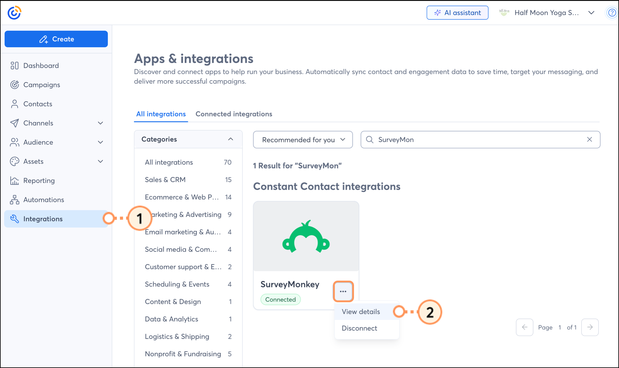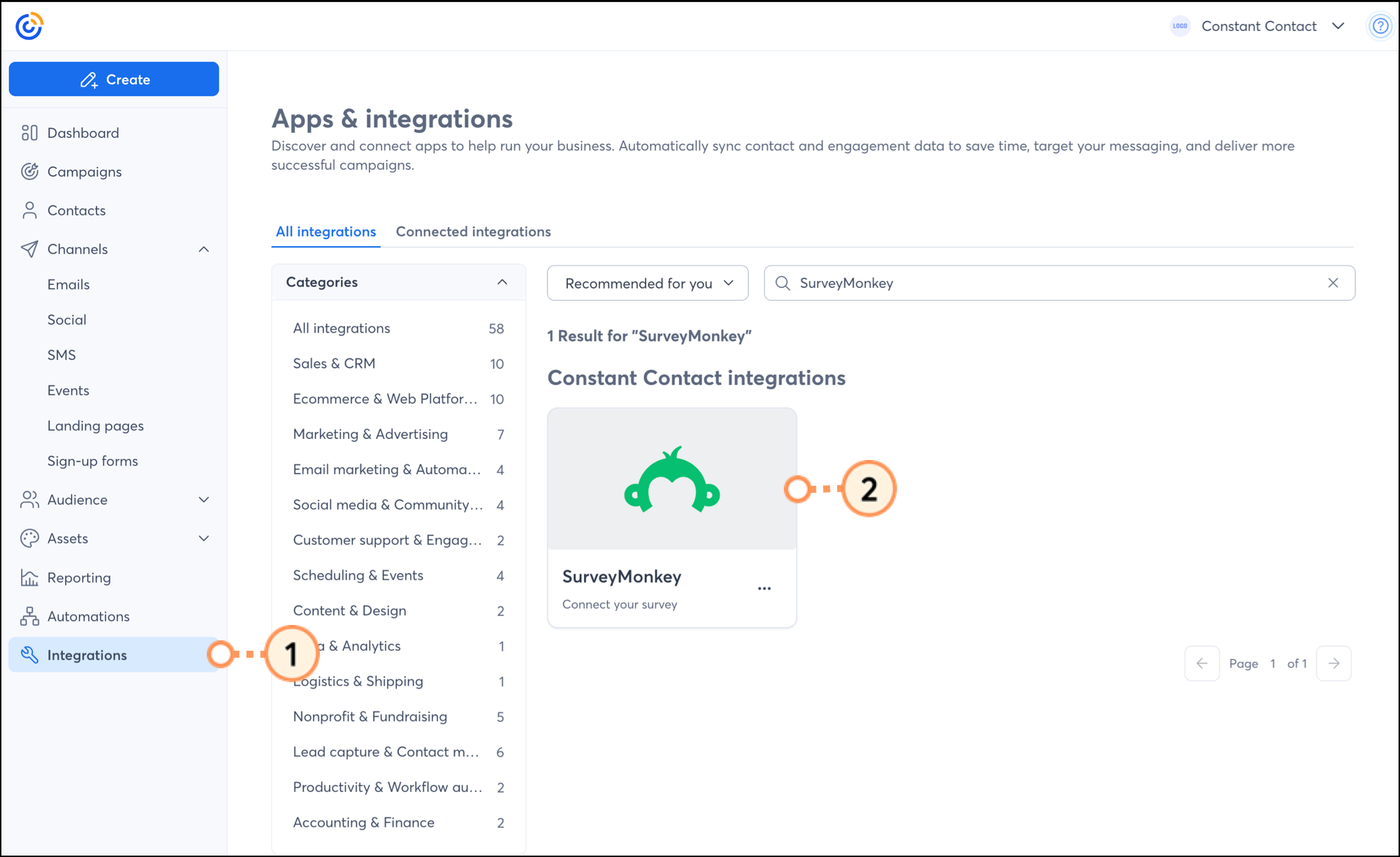 Once your SurveyMonkey account is synced to Constant Contact, there are a couple of ways to utilize the integration.
