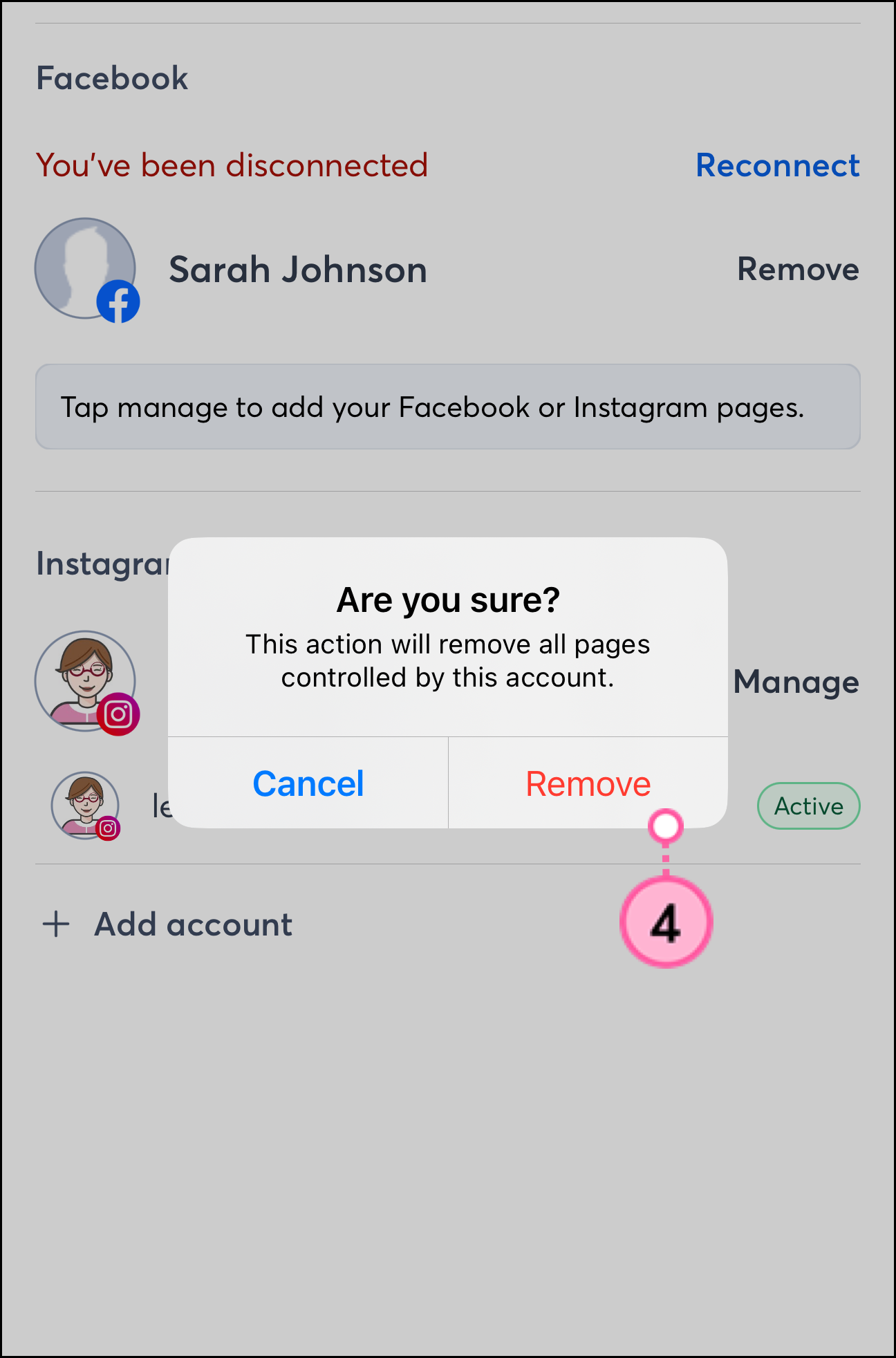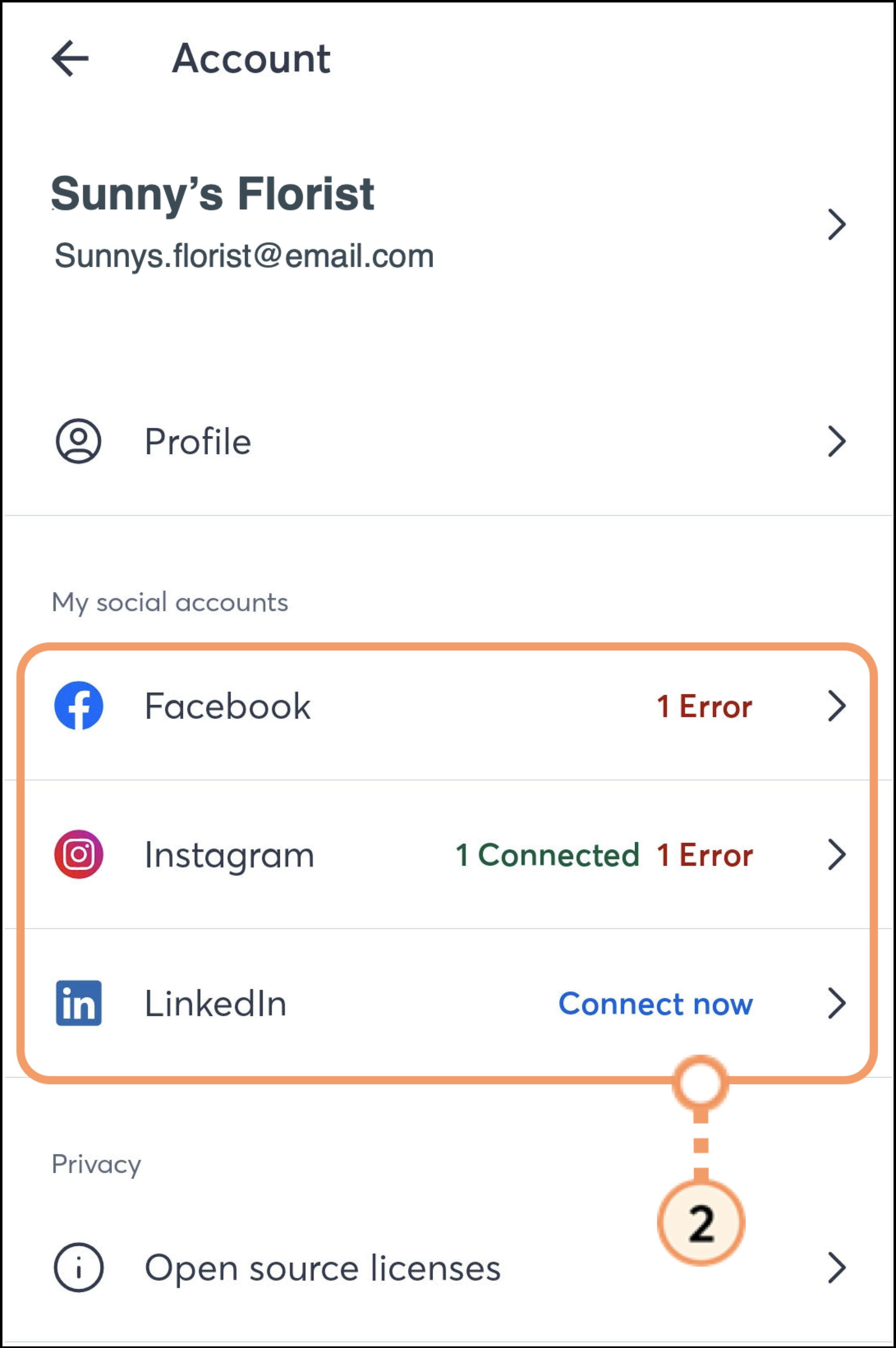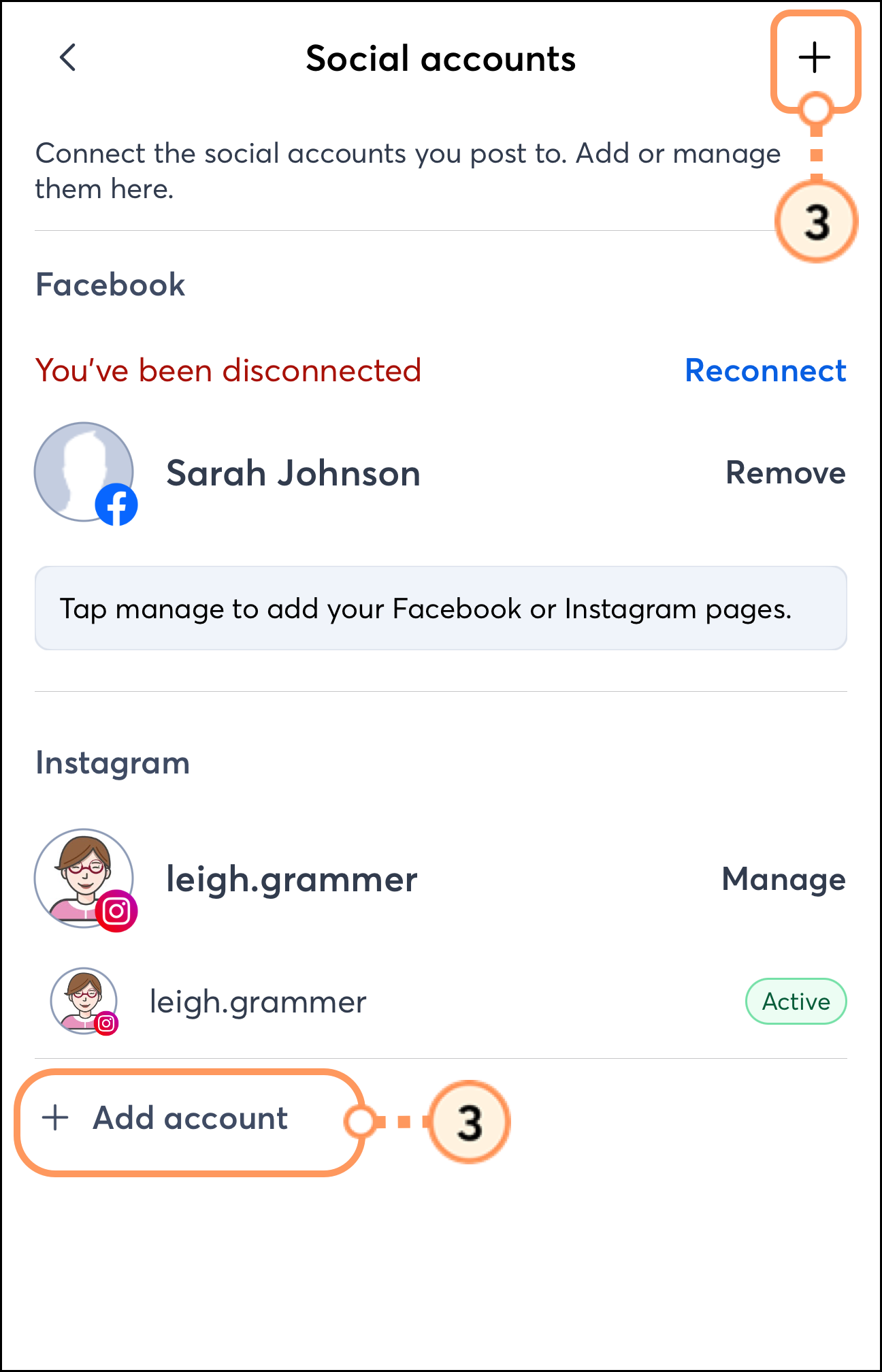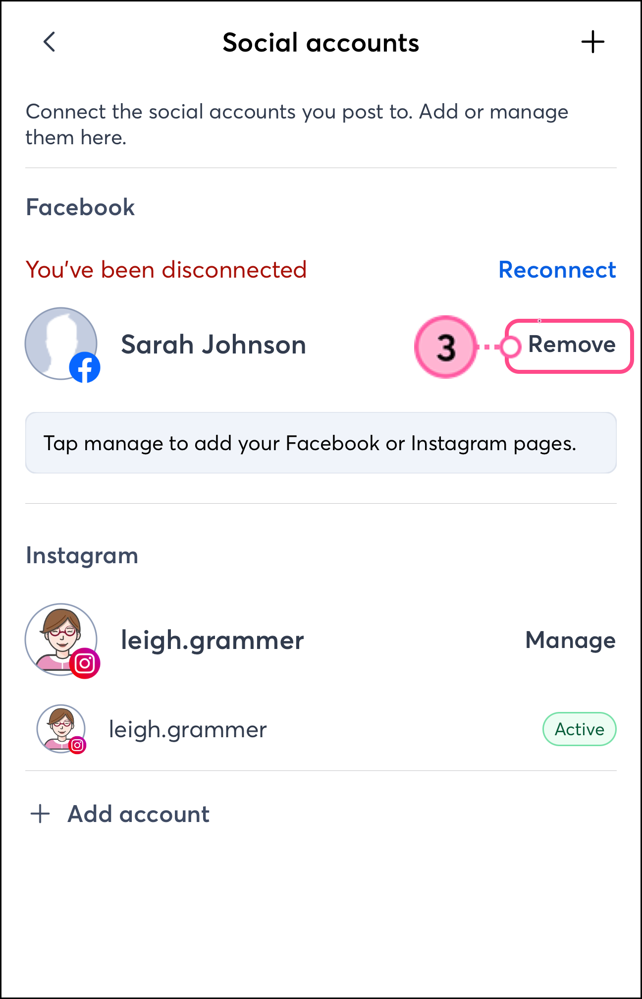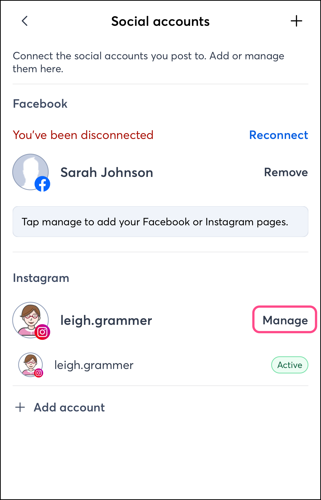 Tap on one of your Social Accounts.