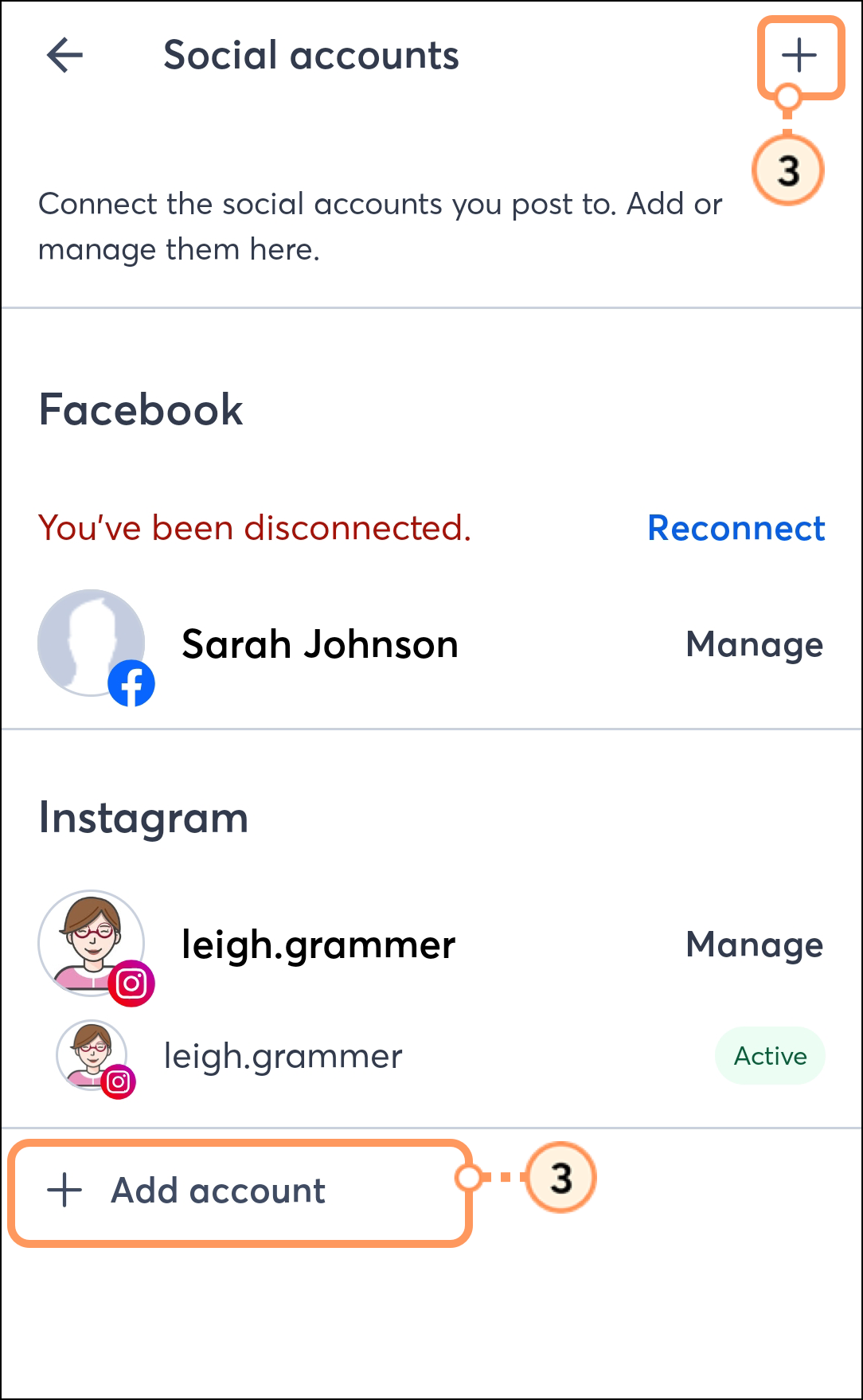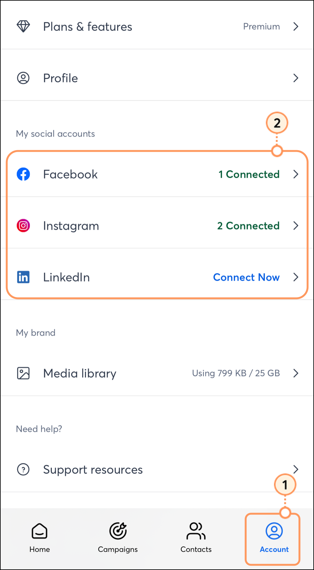 Note: Many social media platforms allow you to have multiple pages or accounts under the same login. With Constant Contact, you can manage posts for all these pages or accounts.