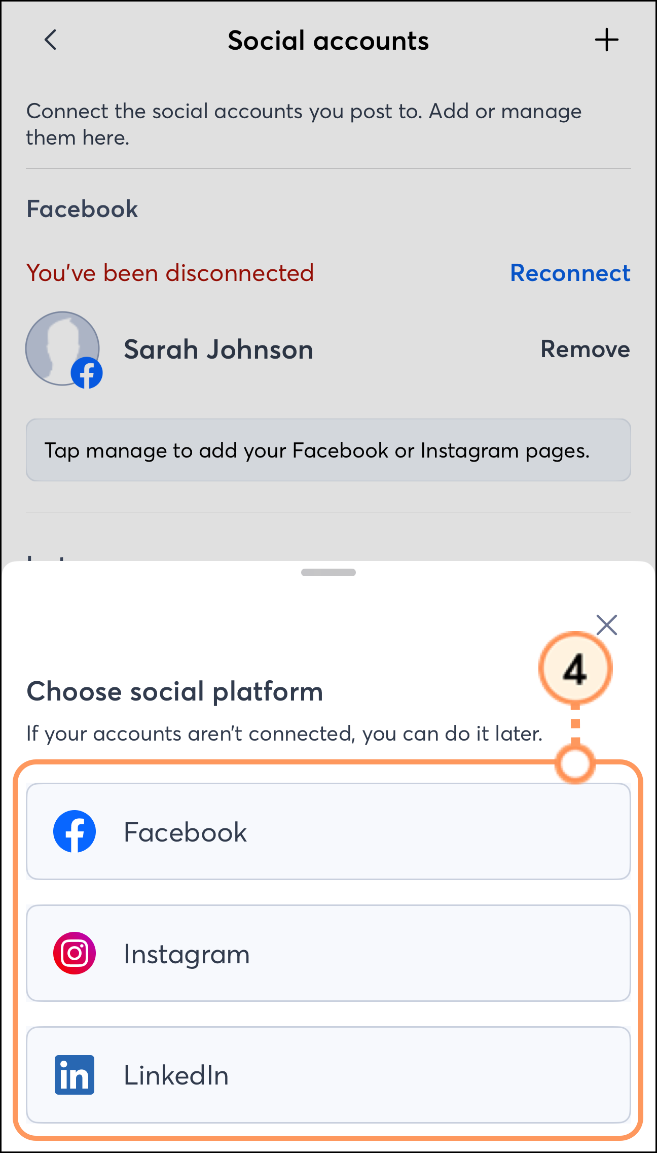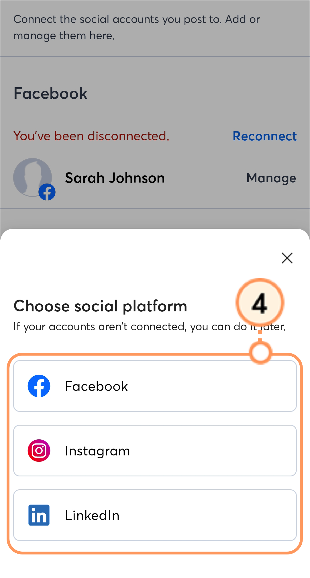 Select the social media platform you’d like to connect.