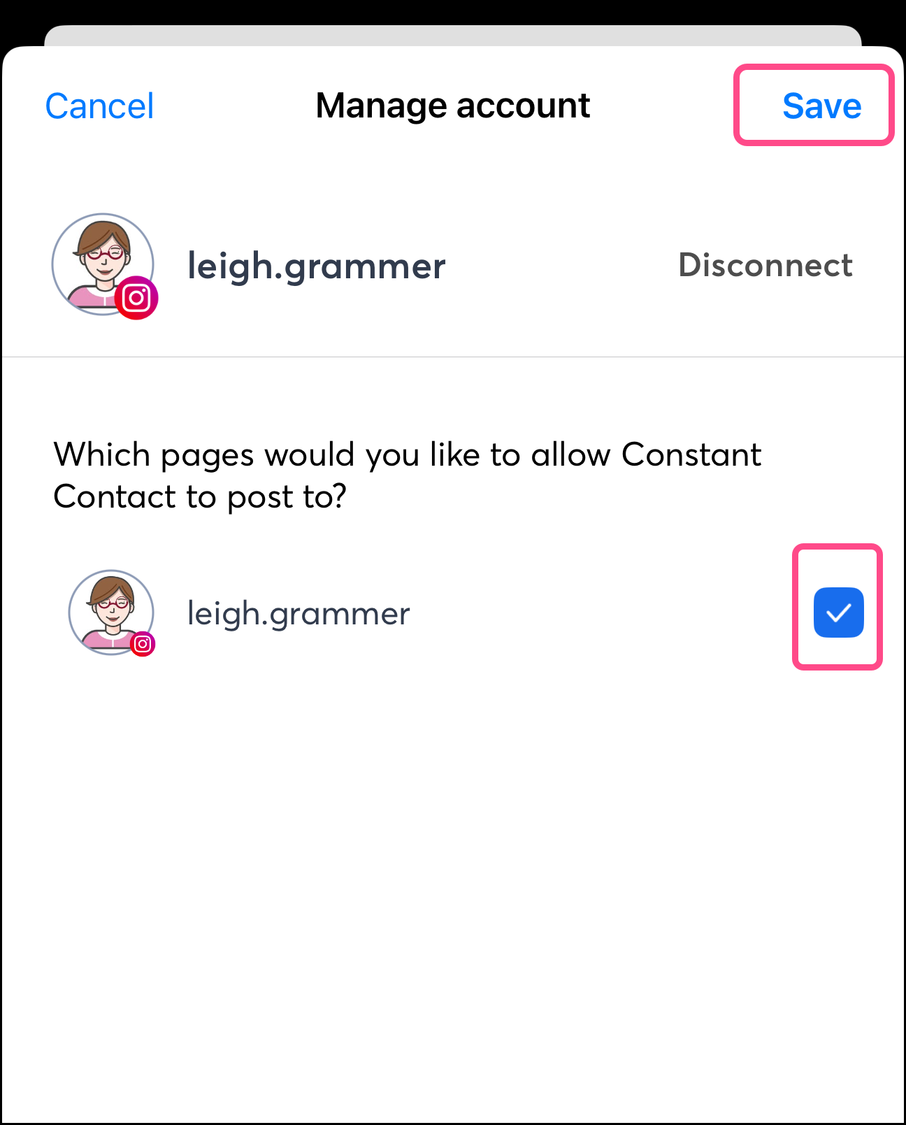 Note: Many social media platforms allow you to have multiple pages or accounts under the same login. With Constant Contact, you can manage posts for all of these pages or accounts.