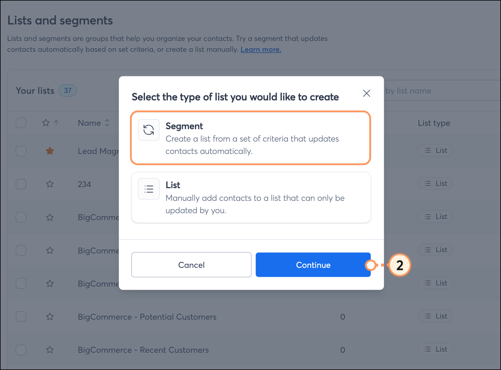 | Save time: Before you get started, make sure your Shopify account is synced with your Constant Contact account so you can create your segment without interruption. |