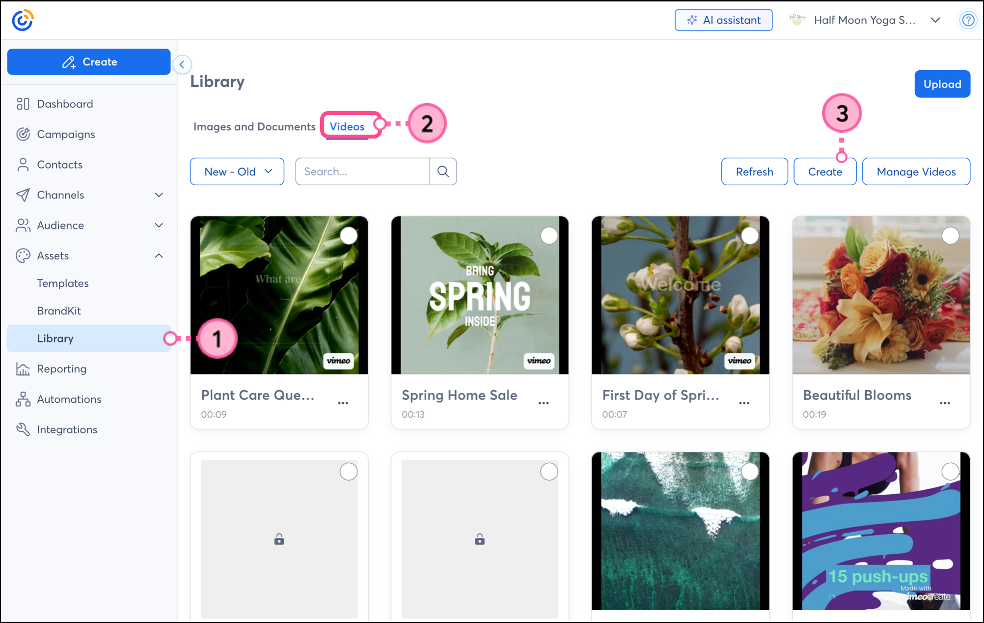When you connect your Vimeo account to Constant Contact, you can seamlessly manage all your videos, as well as create new videos from stock videos, photos, and personal videos, right from your Constant Contact Library. Start from an existing template, a guided template, or from scratch, and have access to your new video in both your Vimeo and Constant Contact accounts.