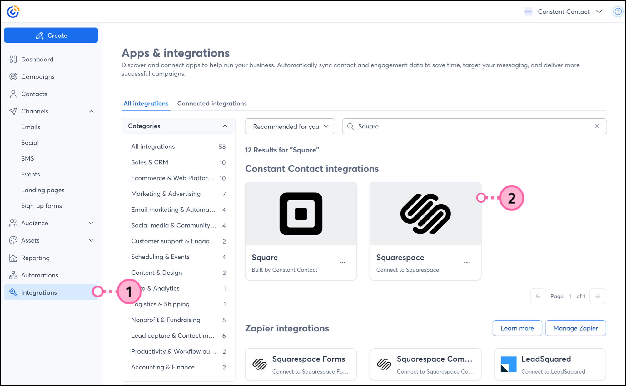 Once your Square account is synced to Constant Contact, there are a few ways to use the integration throughout your Constant Contact account.