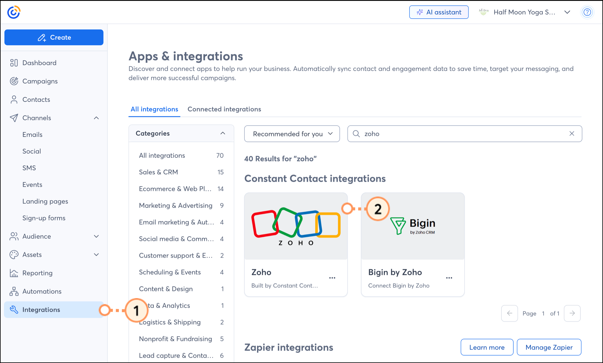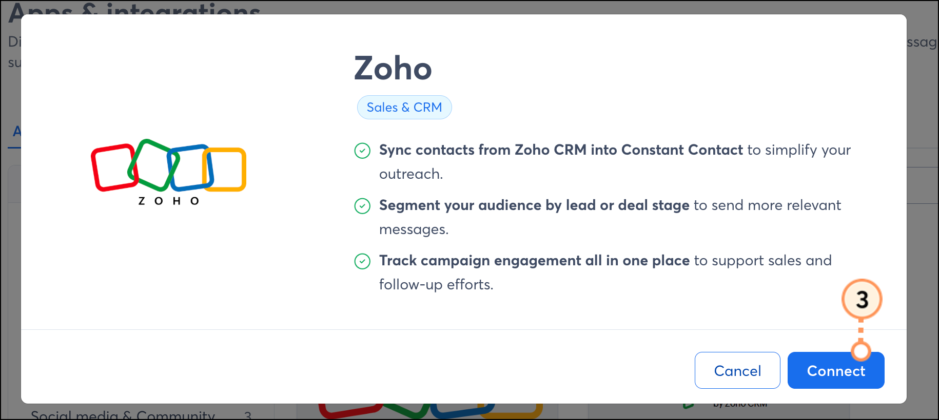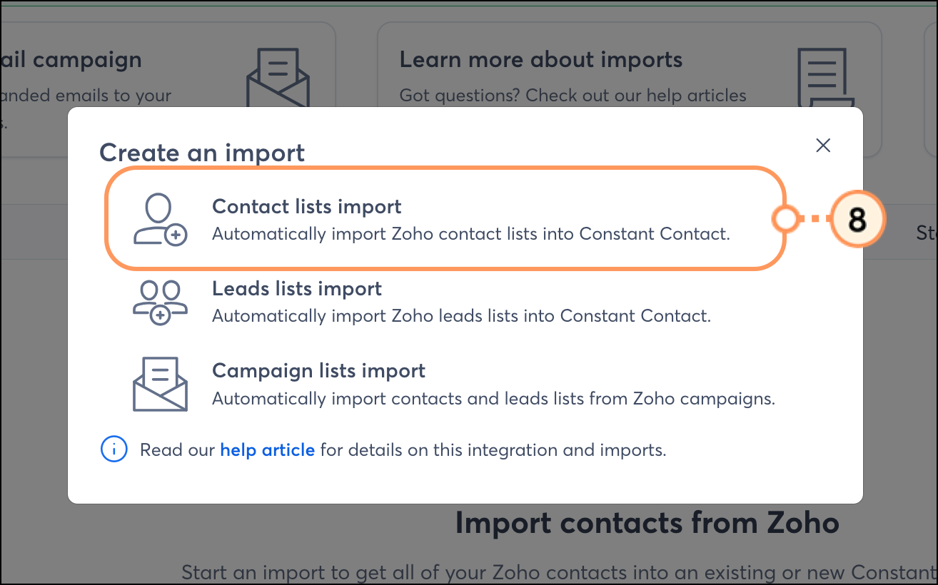 Our integration with Zoho allows you to auto-sync contact and lead data into Constant Contact to save you time and send more targeted emails. There are three methods available for import: by Contacts List, Leads List, or Campaign List.