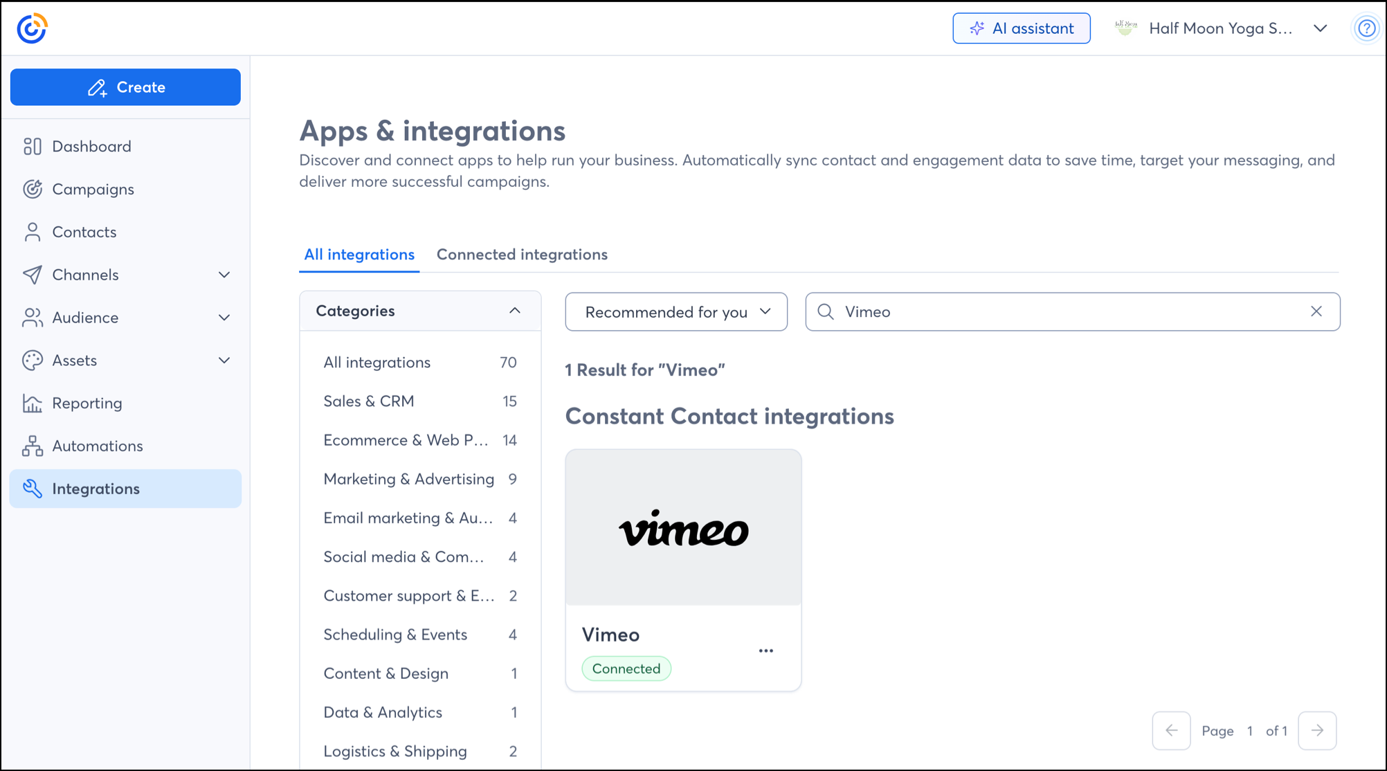 To get started, sync your Vimeo account to your Constant Contact account. Follow the steps linked below: