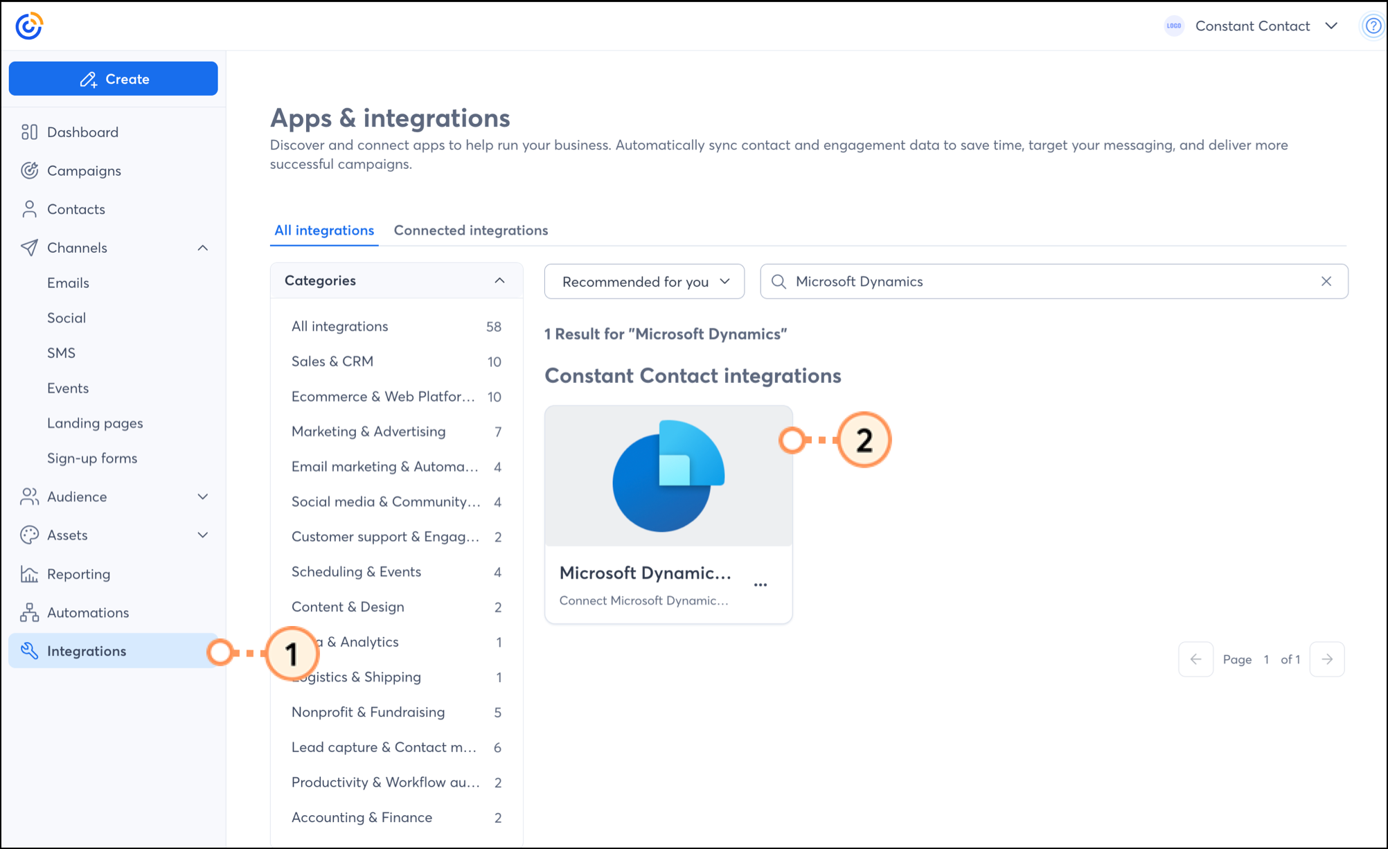 Una vez que desconecte la integración, sus contactos de Microsoft Dynamics 365 Sales ya no se sincronizarán a Constant Contact. Los contactos que ya se hayan sincronizado y añadido a su cuenta de Constant Contact permanecerán allí. Desconectar la integración de Microsoft Dynamics no eliminar los contactos previamente importados.