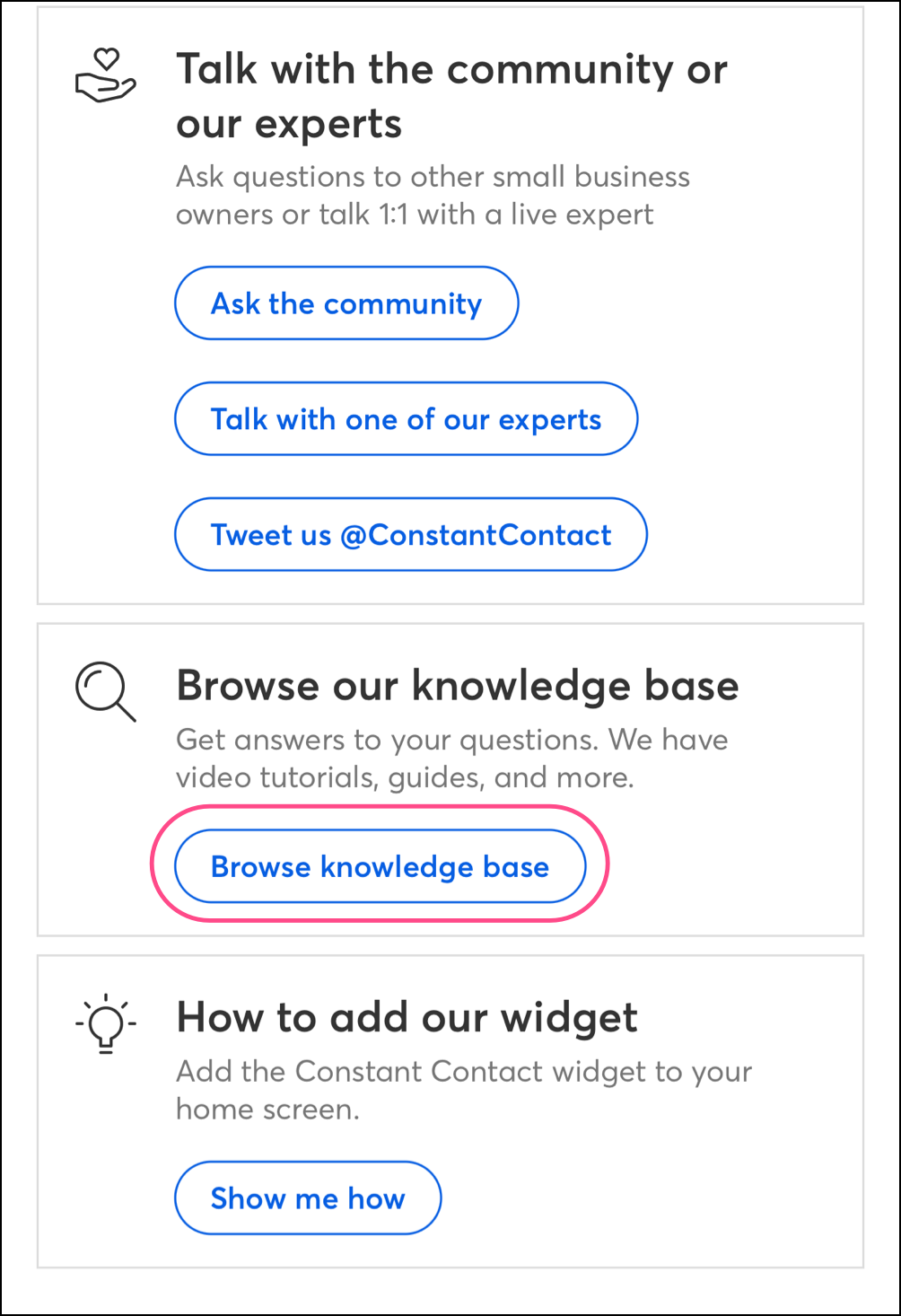 Access our intuitive knowledge base with over 300 articles to help you understand how to use your Constant Contact account and how to find everything you need within the application.