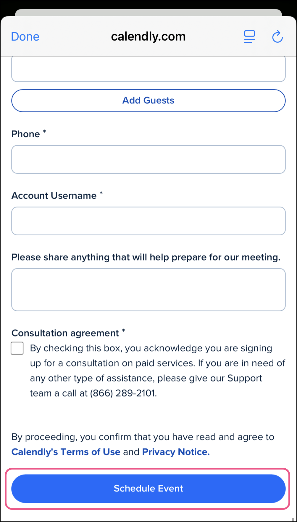 You’ll receive an email confirmation regarding your scheduled meeting. You can cancel or reschedule, if needed, using the links in the confirmation email.