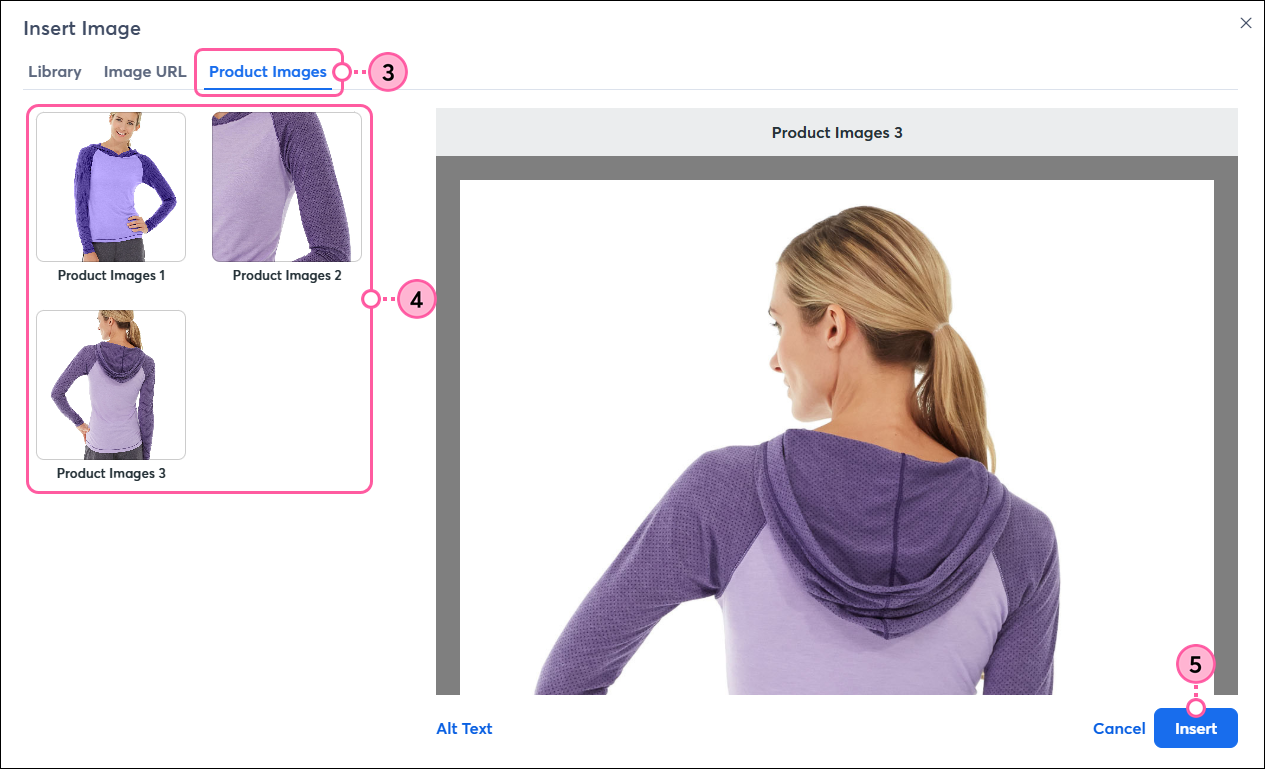 If you have multiple platforms connected to Constant Contact, you can choose to insert a product from any of your stores. When inserting products from a Shopify, BigCommerce, Squarespace, Square, or Wix store, you have the additional ability to include variations of the product.