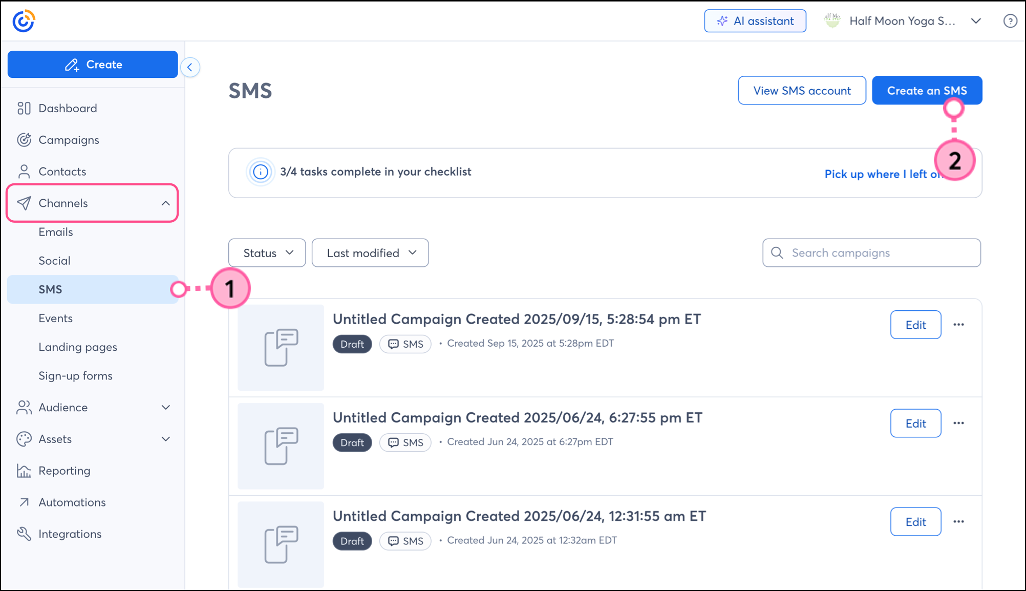 If you don't want to schedule or send right now, save your campaign as a draft, and you can send it whenever you're ready. SMS campaigns that are in "scheduled" status can be unscheduled and edited at any time, but once the status changes to "sent," the campaign can't be called back. After sending your SMS campaign, give it a little time and then check your reporting to see how it did.