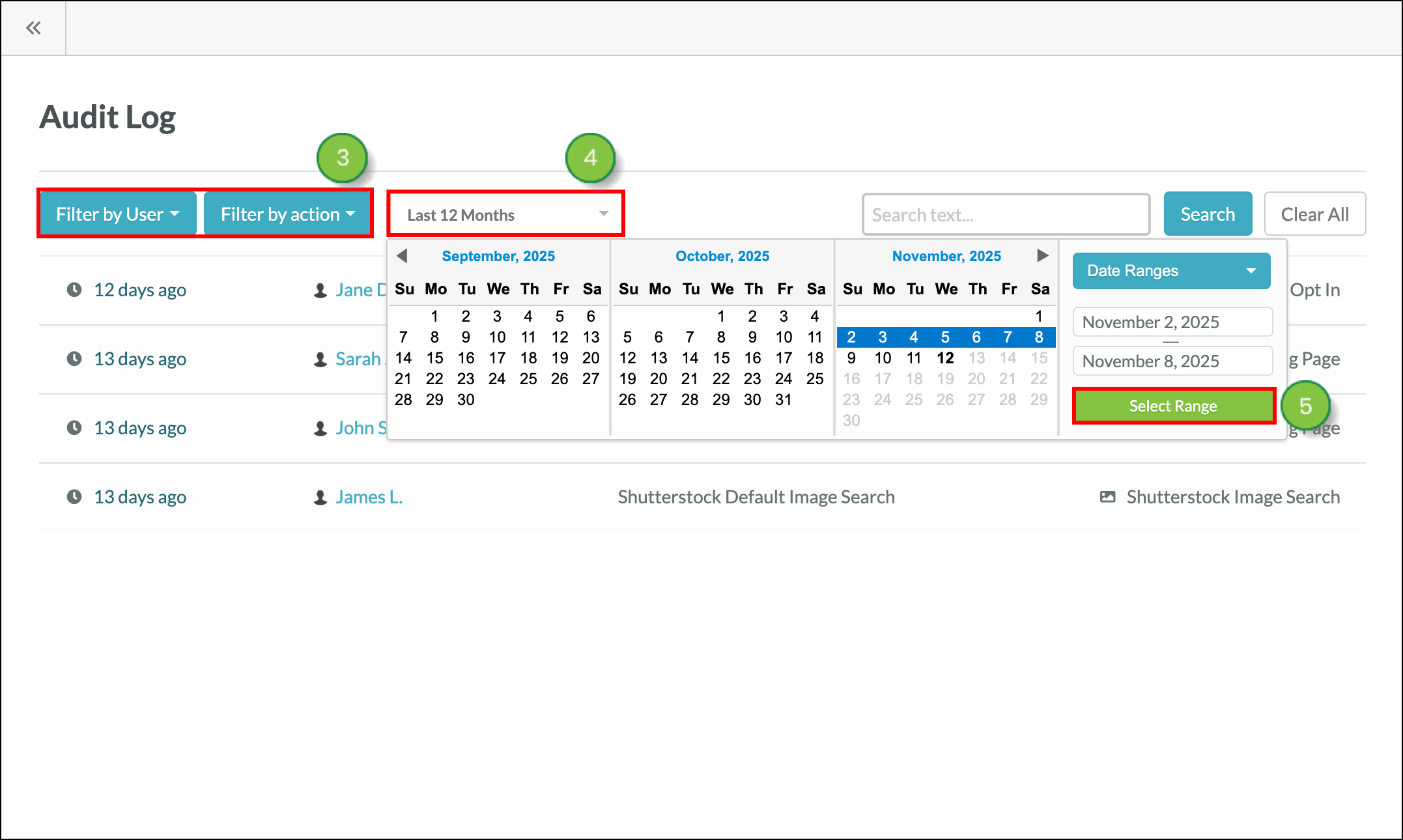 Audit logs show when an action was performed, who performed the action, and what was done. Audit logs can be filtered to show actions by a specific person, or by all actions from the previous 90 days.