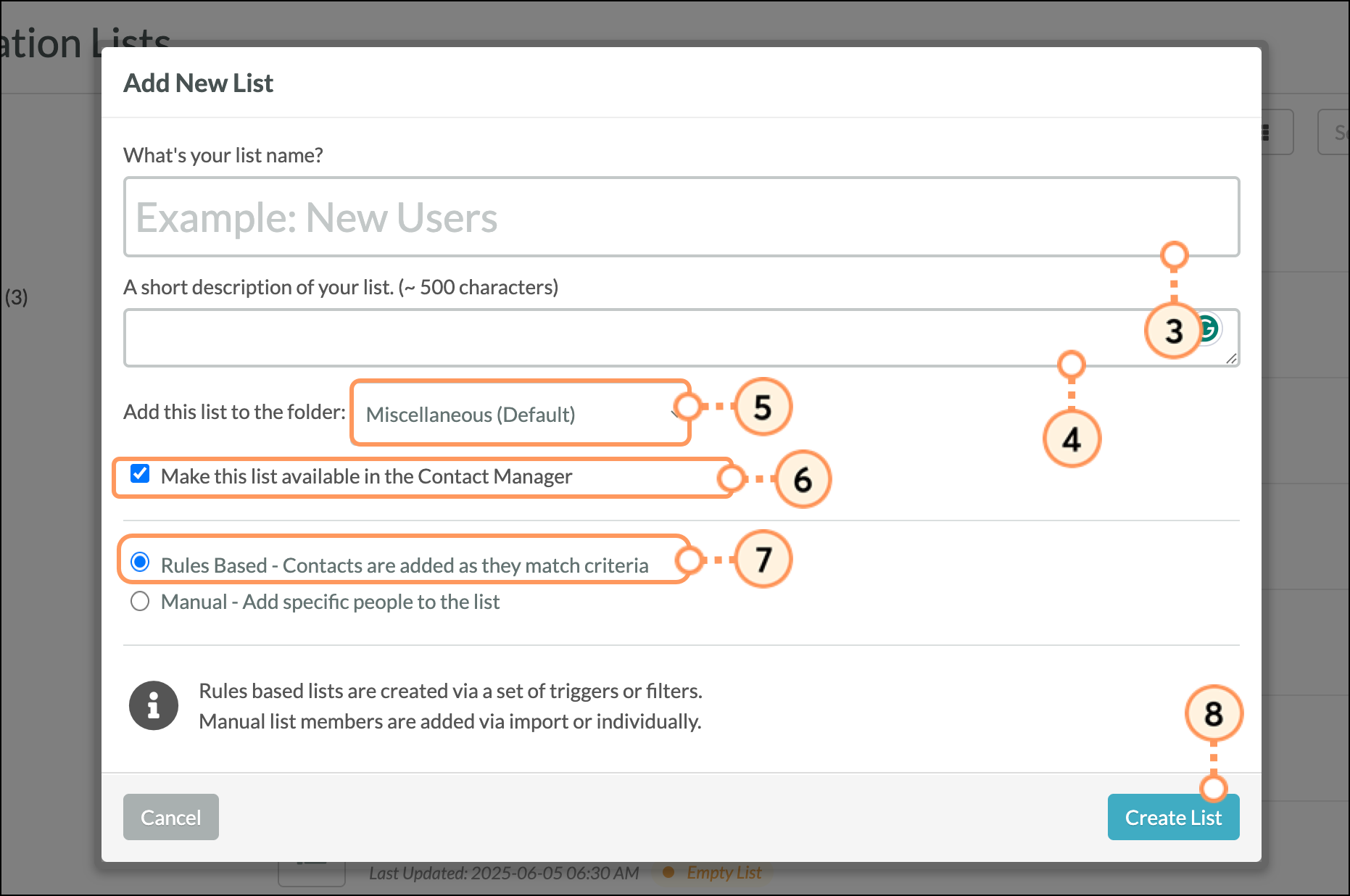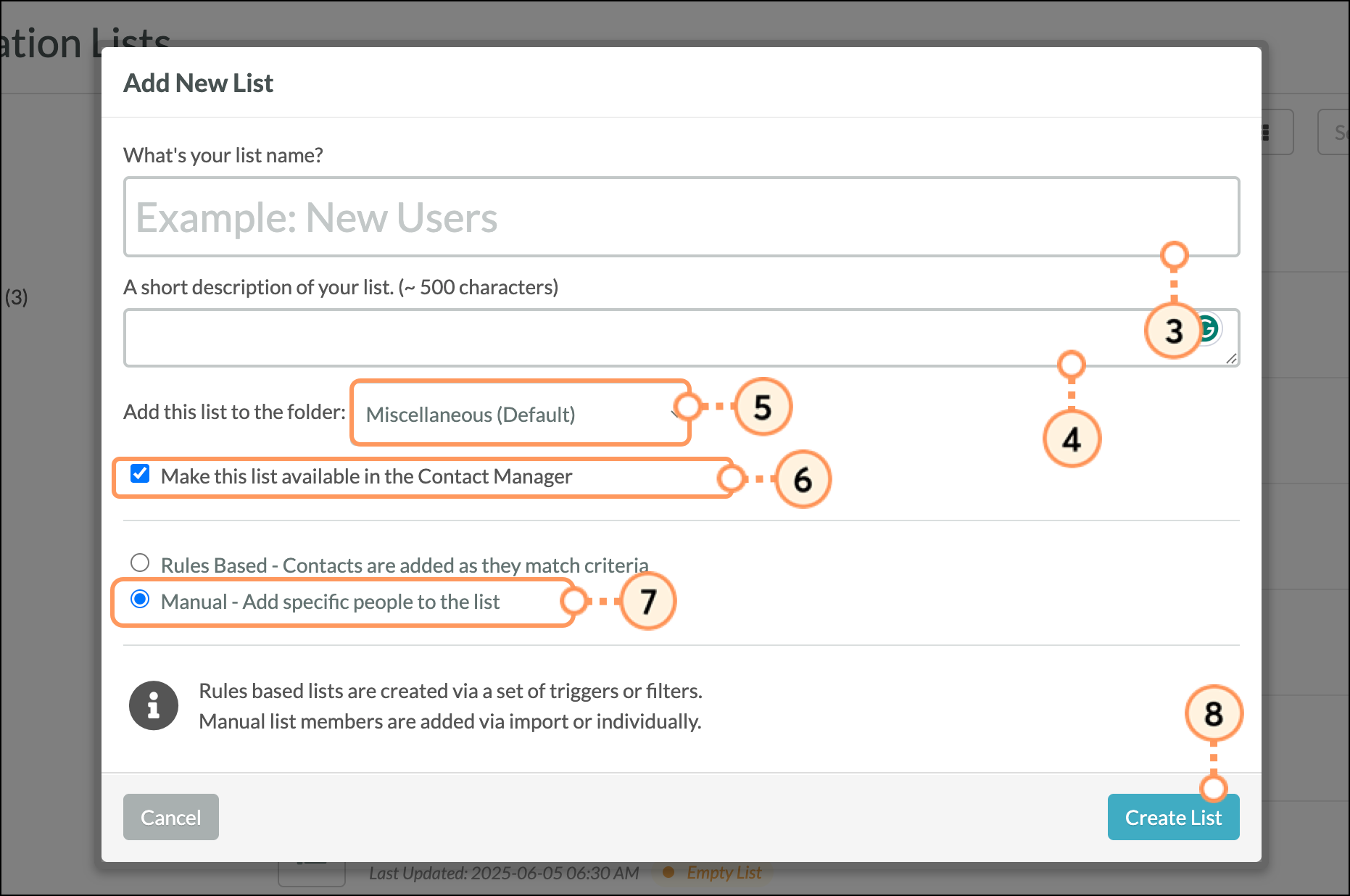 Manual lists are important to the overall opt-in process. They house those leads that do not satisfy the opt-in status and let you confirm lead statuses as a whole.