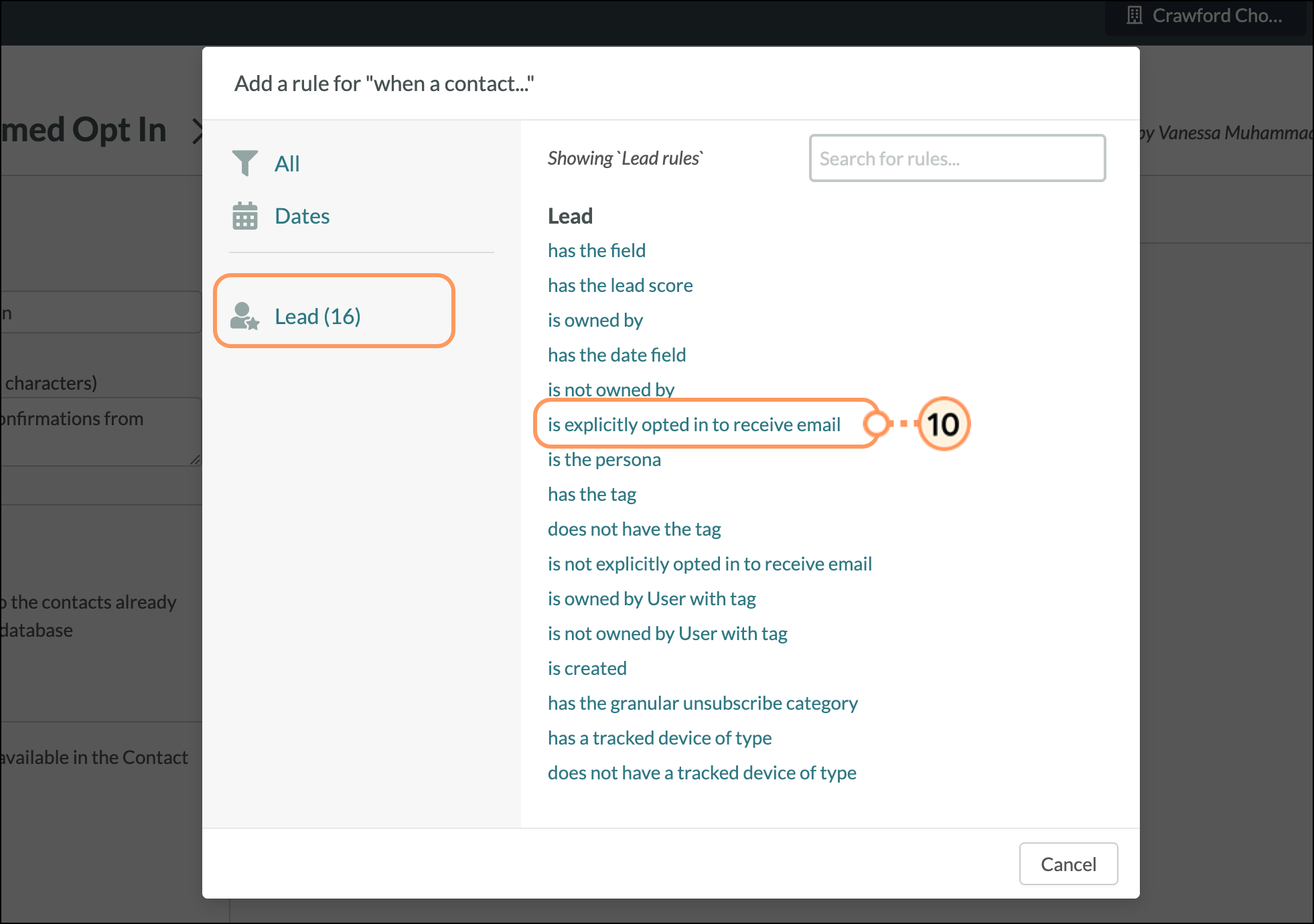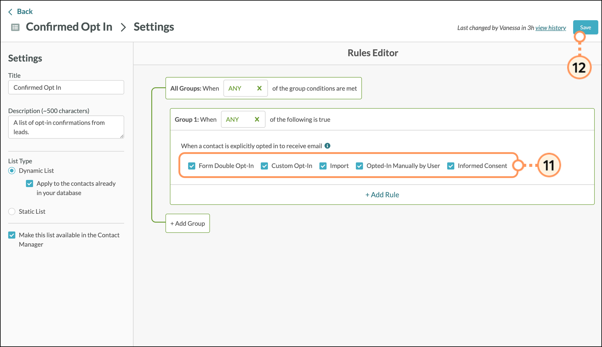 To create a rules-based list that focuses on leads who have opted in to receive your content, do the following: