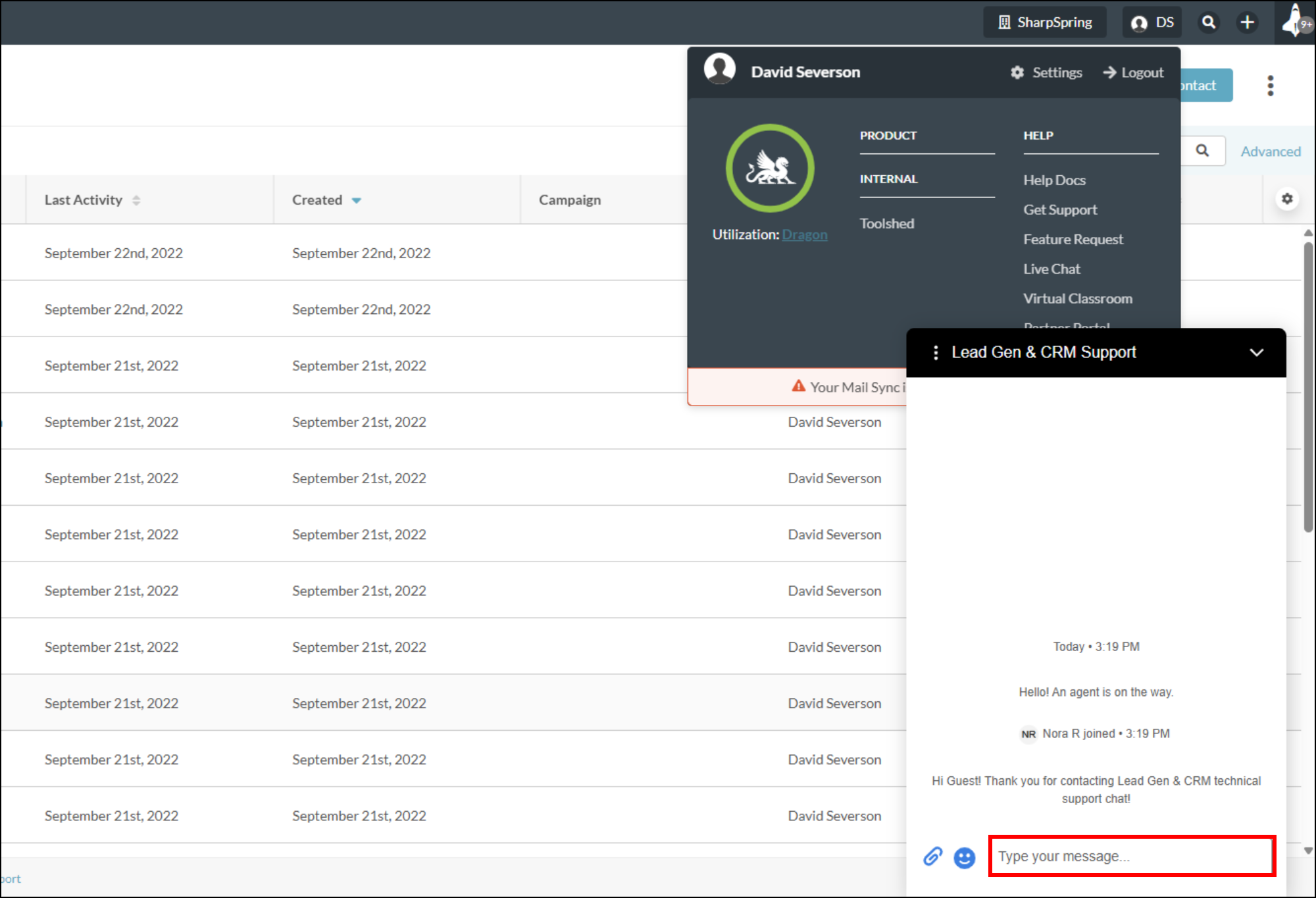 Live Chat lets you communicate with a Lead Gen & CRM Support team member through a chat window.