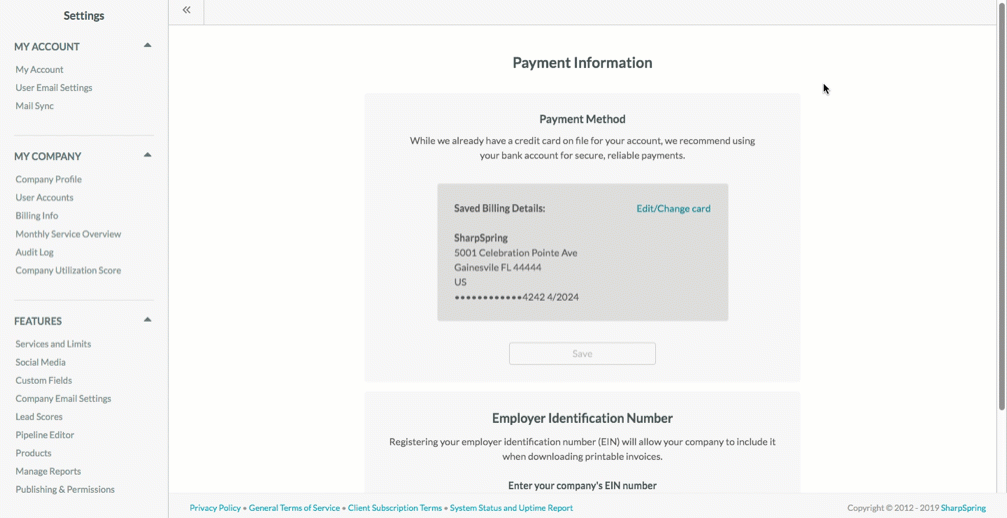 Businesses in the United States have individual employer identification numbers (EIN). Registering your EIN will allow your agency to include it when downloading printable invoices. To enter EIN information, do the following:
