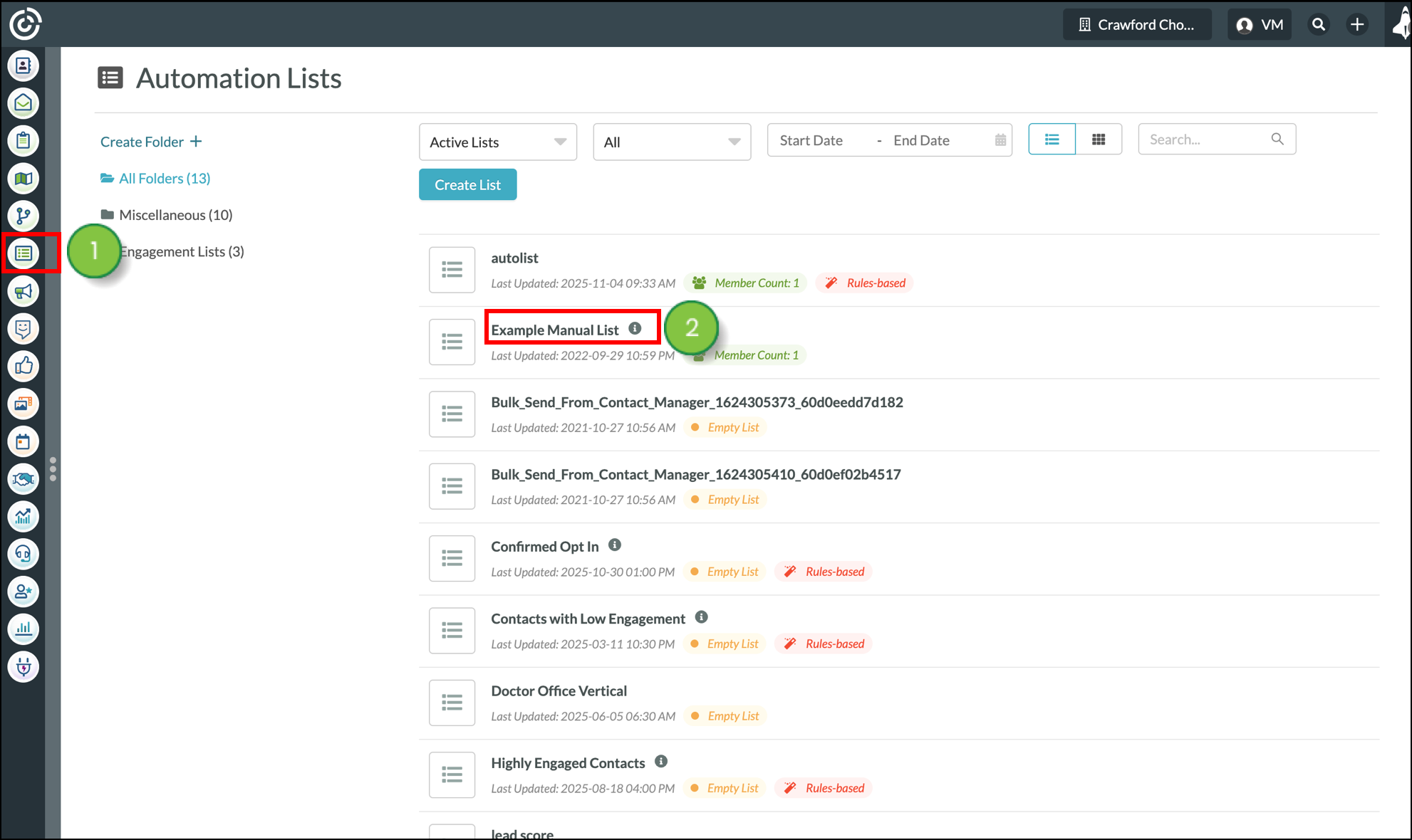 As their name implies, you can manually add leads to manual lists. To manually add leads to lists, do the following: