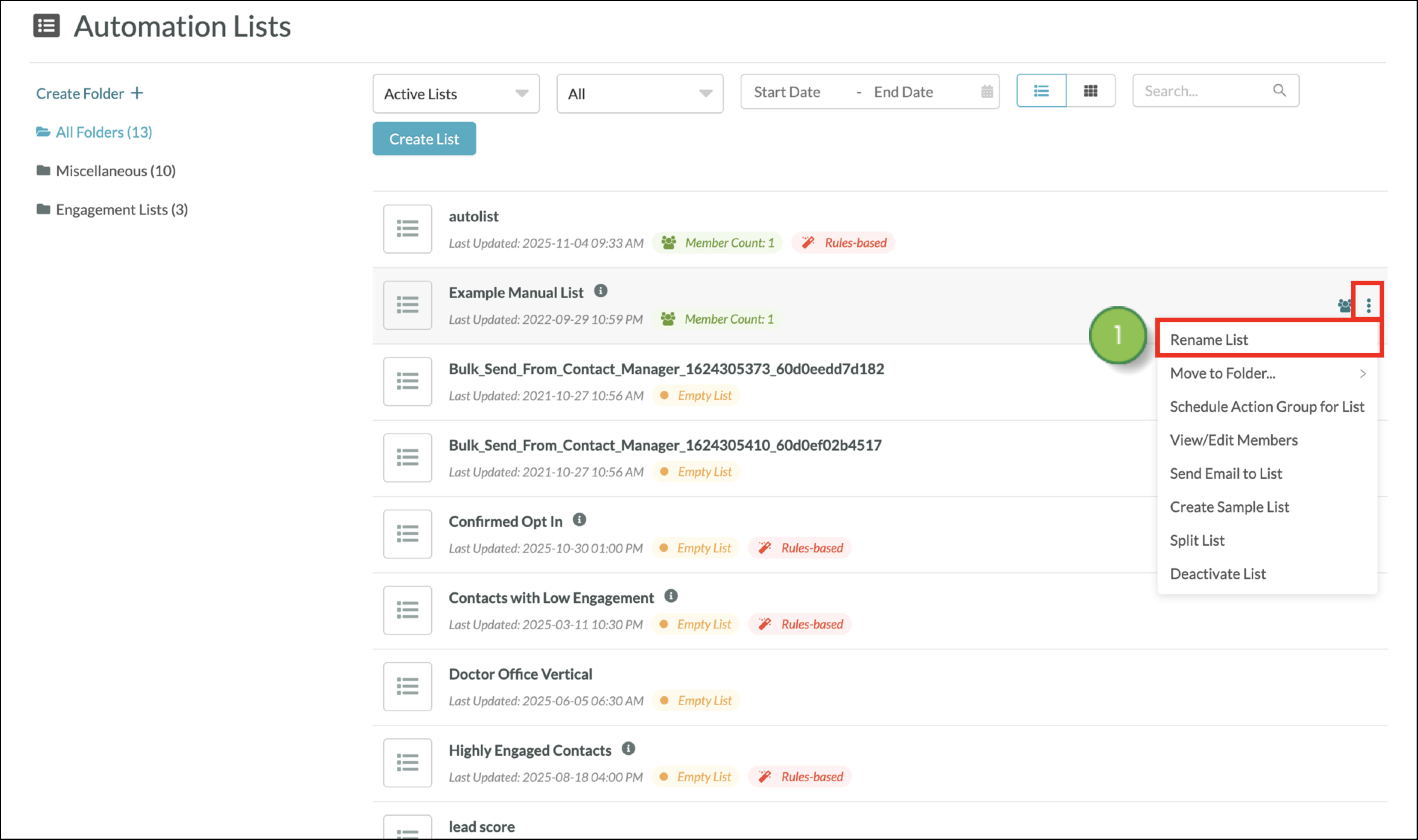 You can rename manual lists as necessary. To rename manual lists, do the following: