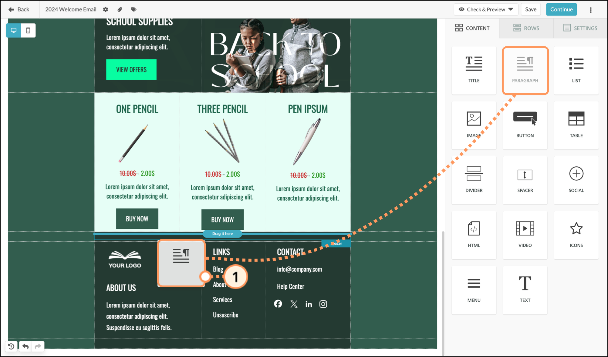 To add custom signatures to emails using the Classic email editor, navigate to the Email page in the left toolbar. Open an existing Classic email template from one of your older emails.