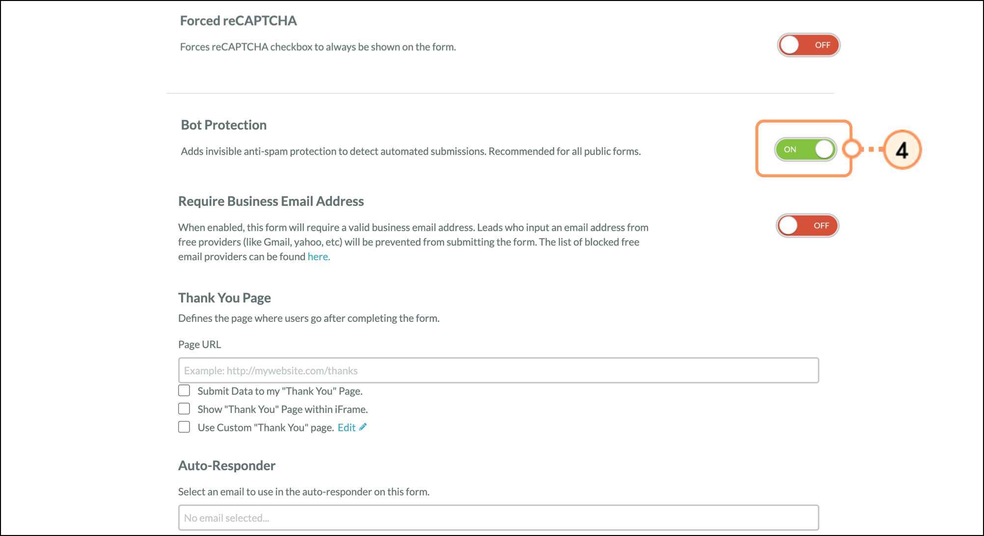 The Bot Protection feature operates silently in the background, helping to keep your forms clean.