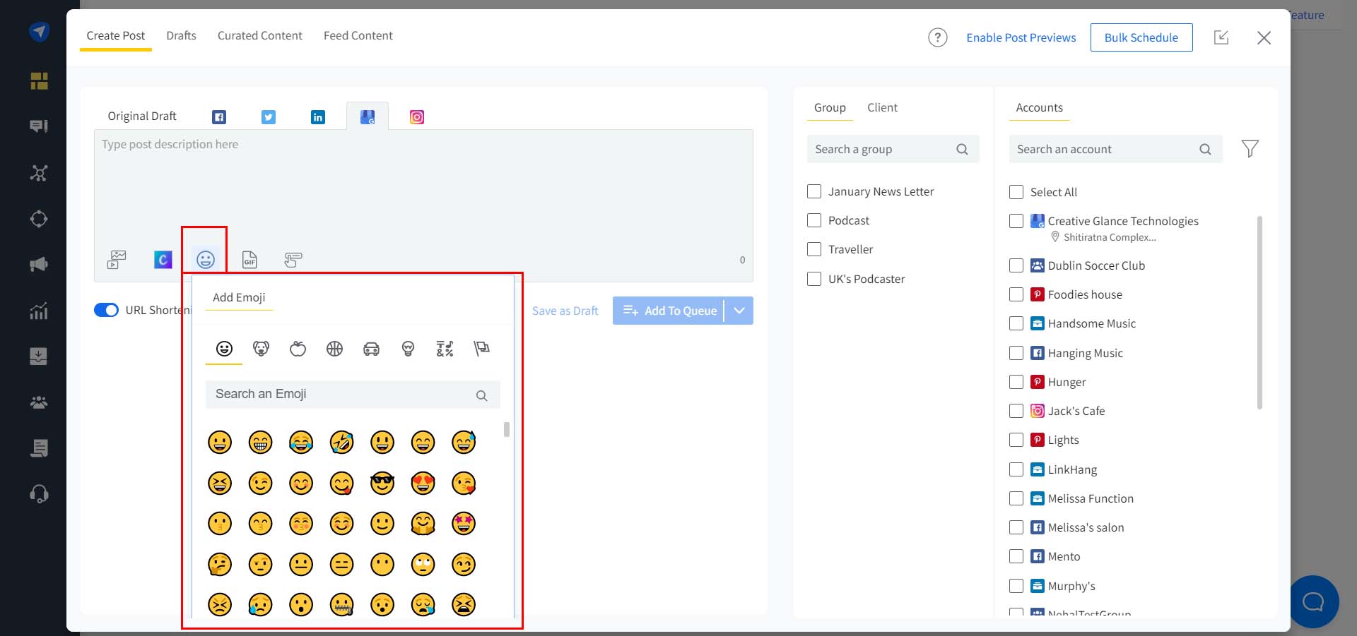 Simply click to add the selected emoji to your post content, enhancing engagement with your audience.