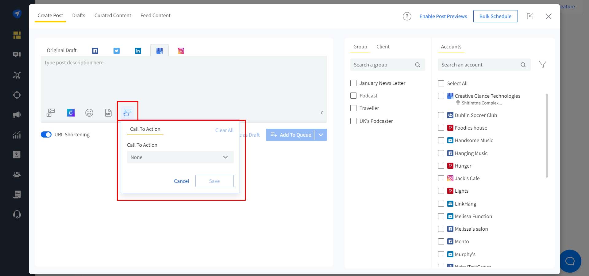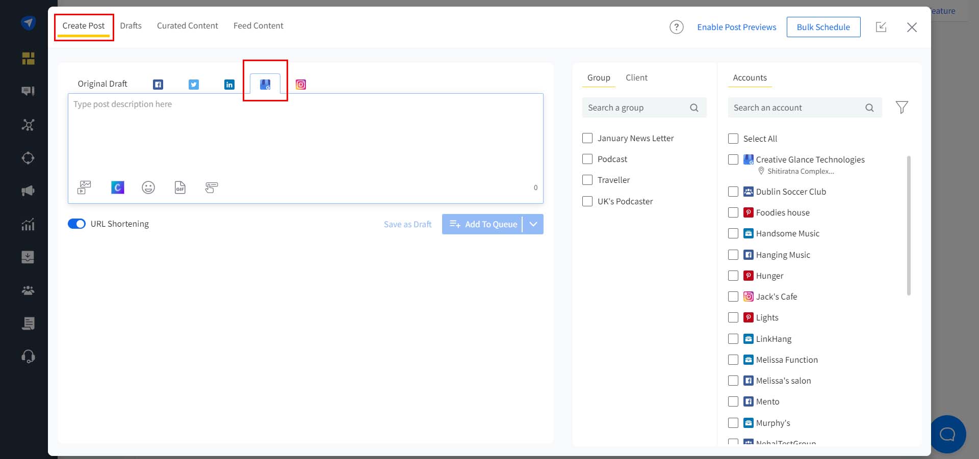 In the Create Post pop-up, select Google Business Profile as your platform.