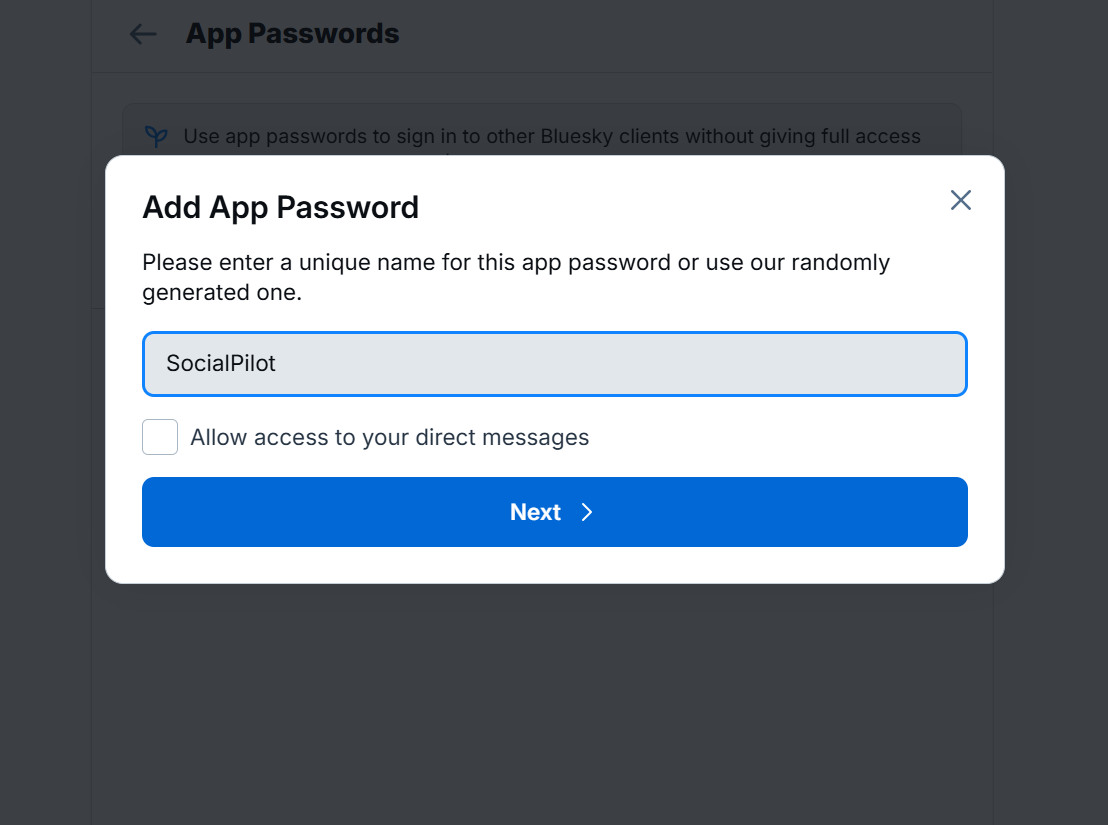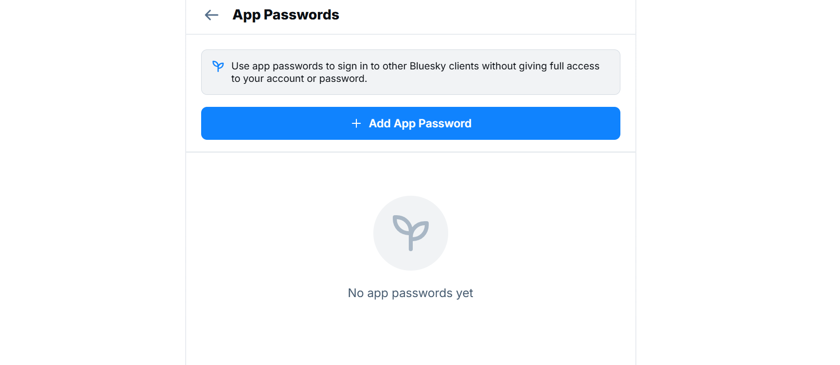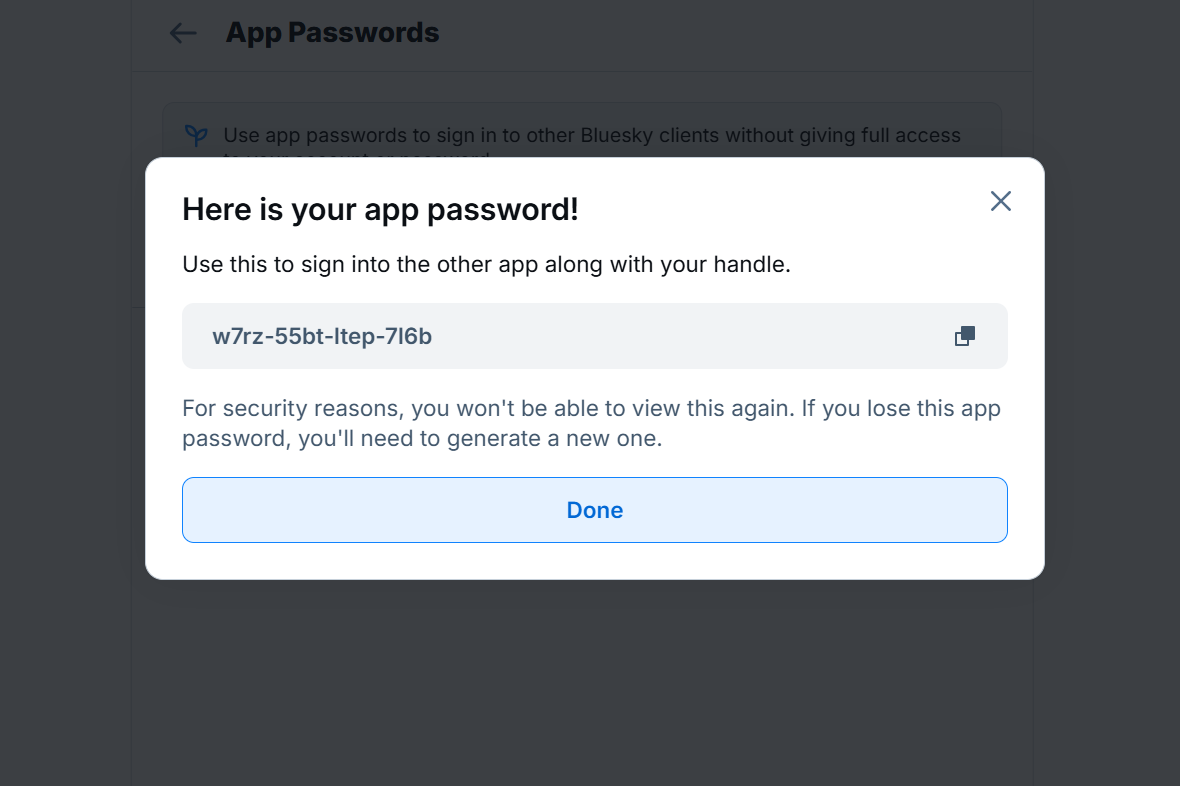 You can generate the Bluesky App Password required to complete the connection in two ways.