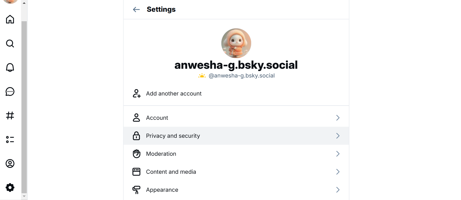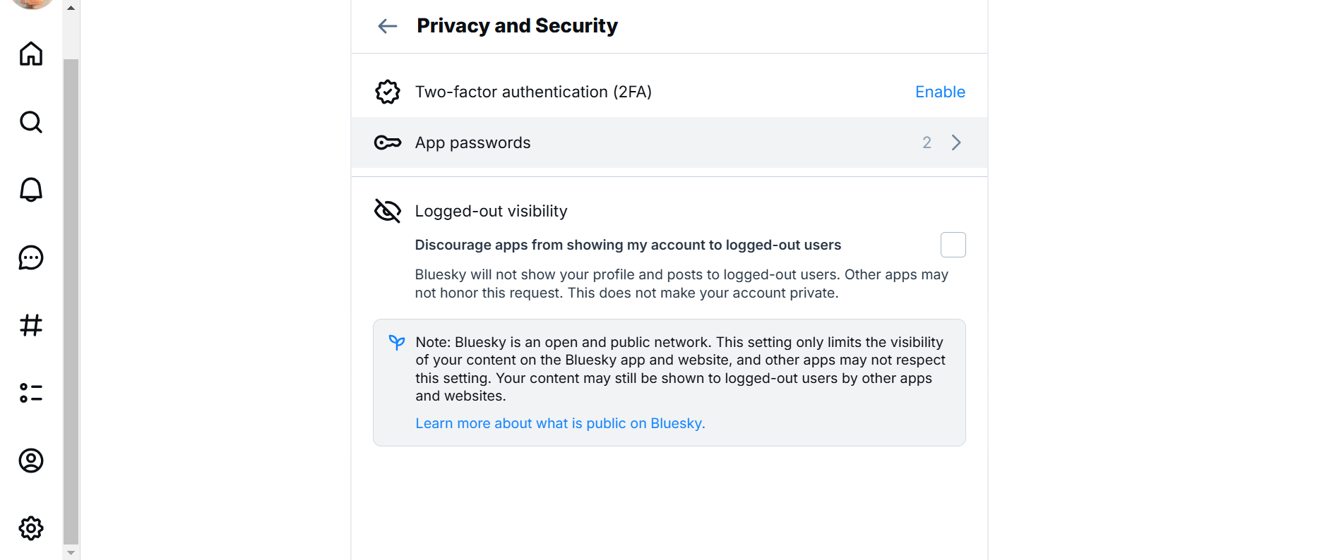 ii) Go to the Bluesky web app and navigate to Settings >> Privacy & Security >> App passwords >>Add App Password.