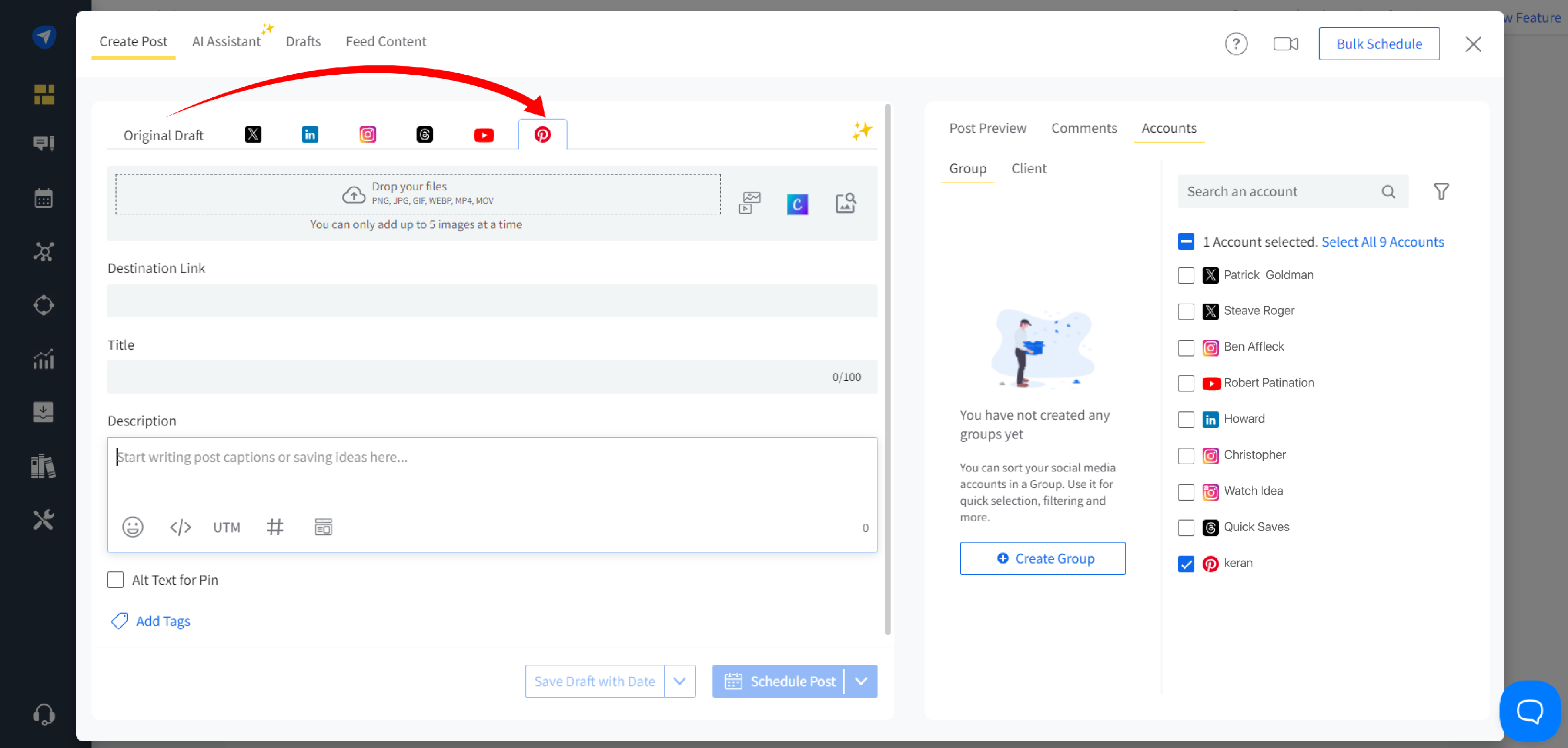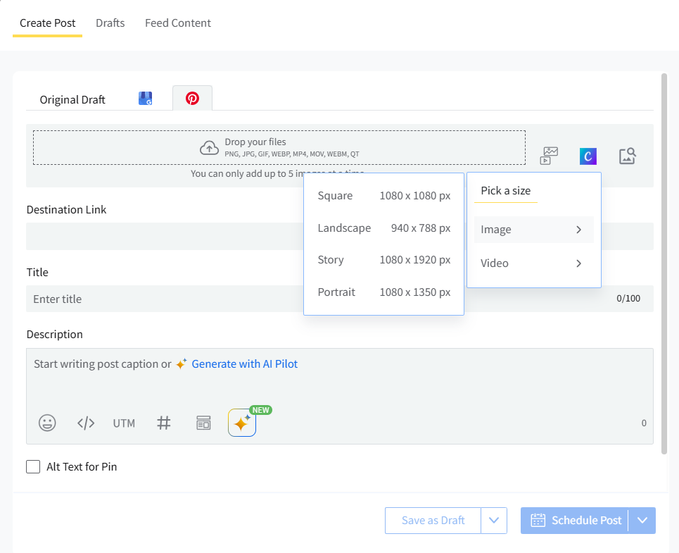 Go to Create Post and switch to the Pinterest tab within the post composer.