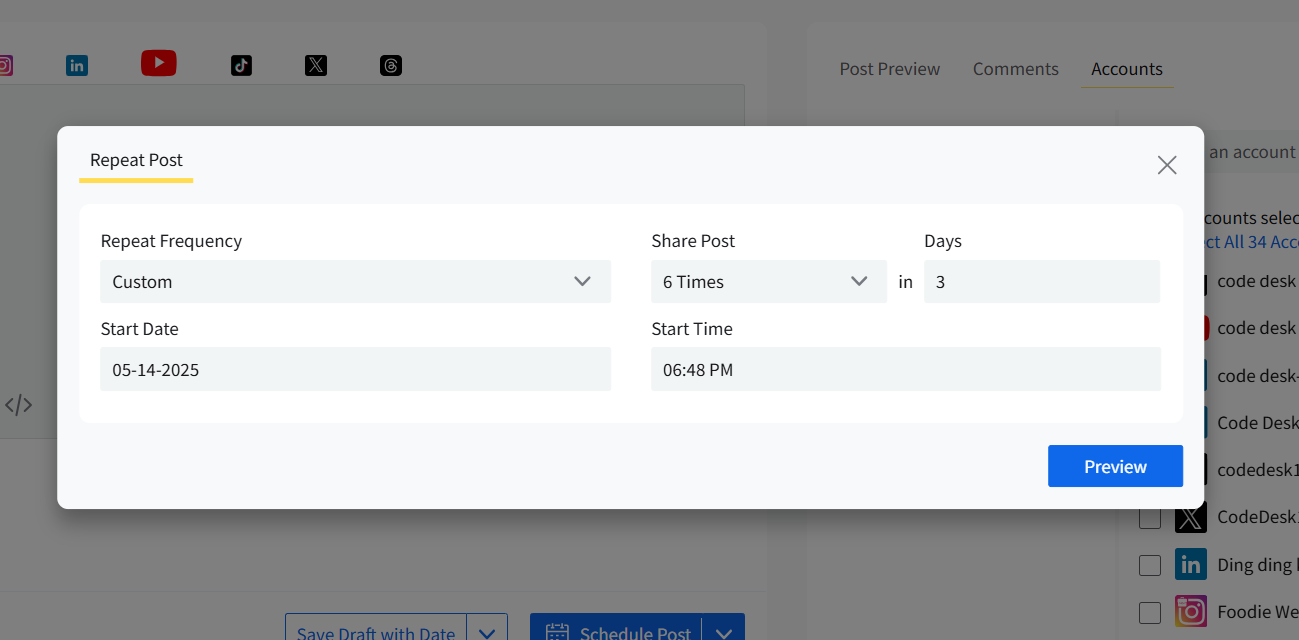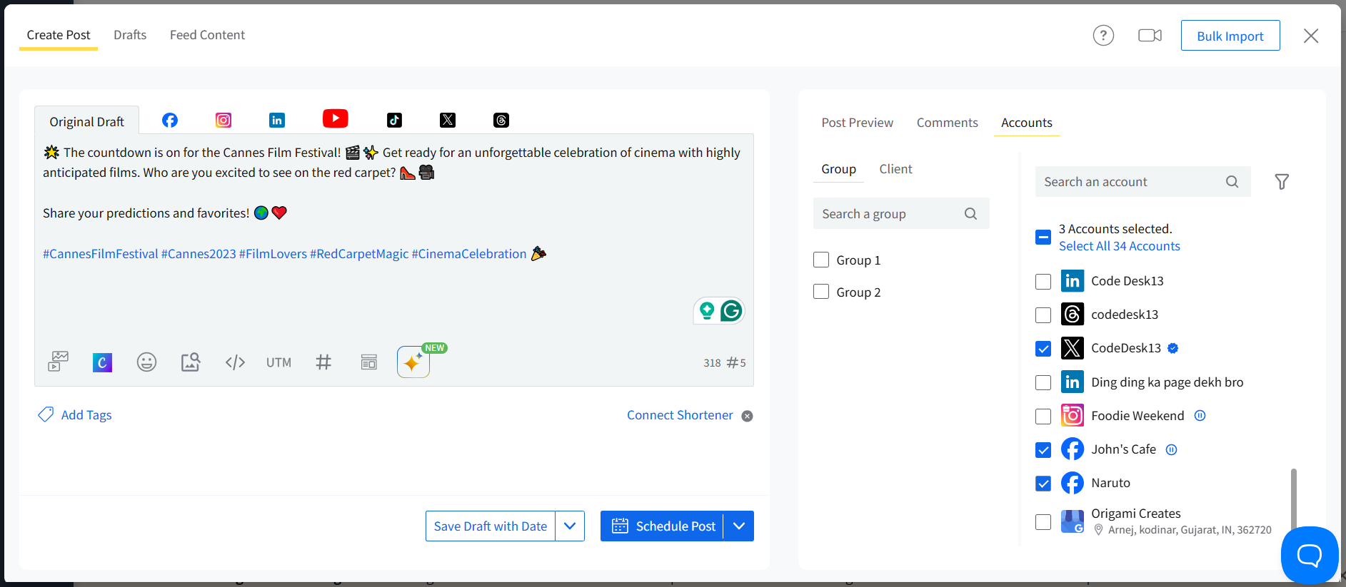 Select the accounts for which you have created the post.