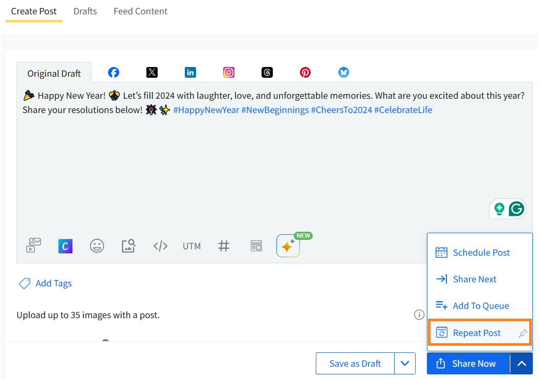 If you want to set a post to be repeatedly published at regular intervals, AI-suggested times can be used for that as well.