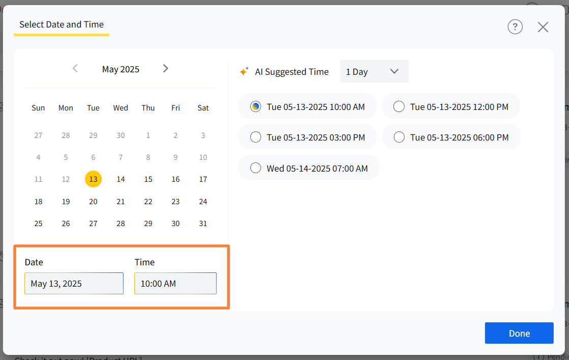 Note: AI suggested times are available only for posts, not for drafts.