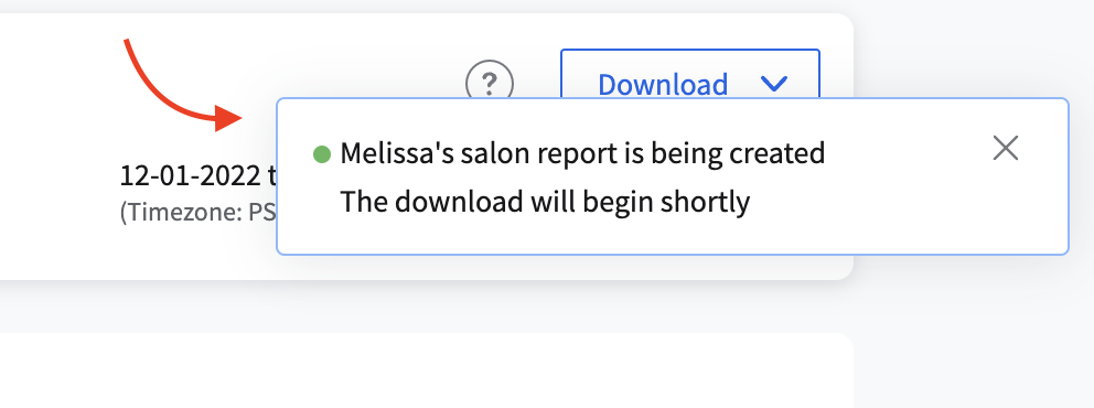 You'll get a pop-up that says "Your report is being created. The download will begin shortly."