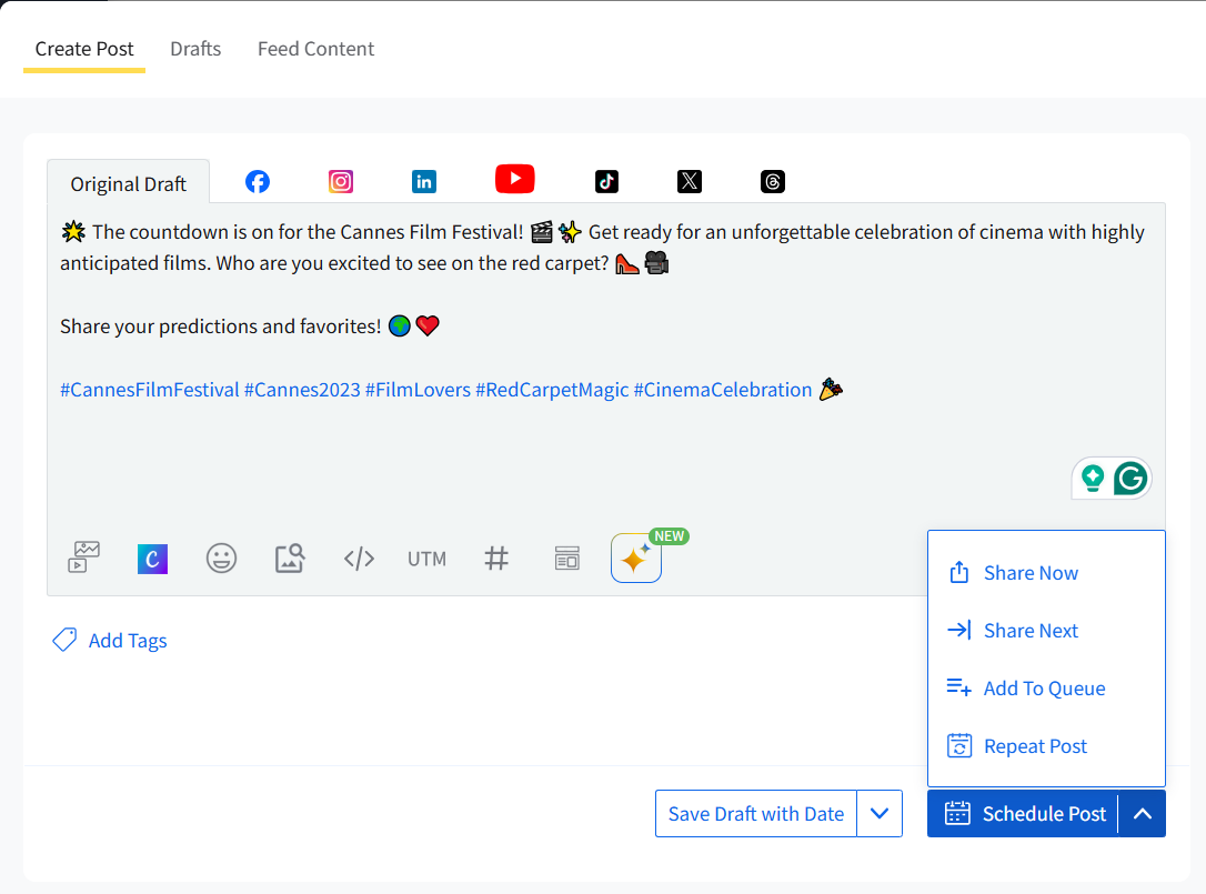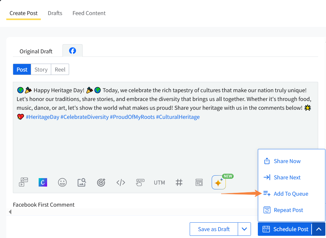 The Schedule Post option gives you full control over when your content goes live.