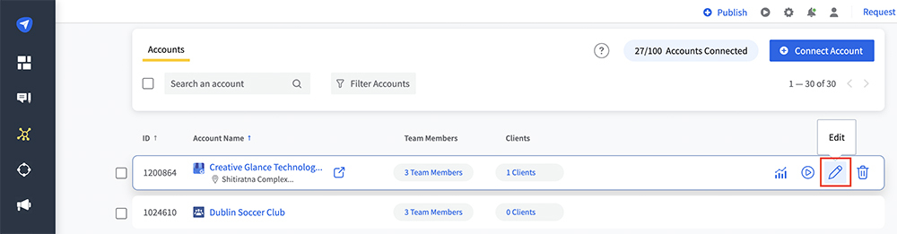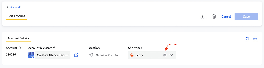 Navigate to the account for which you want to remove the URL Shortener and click the Edit icon.