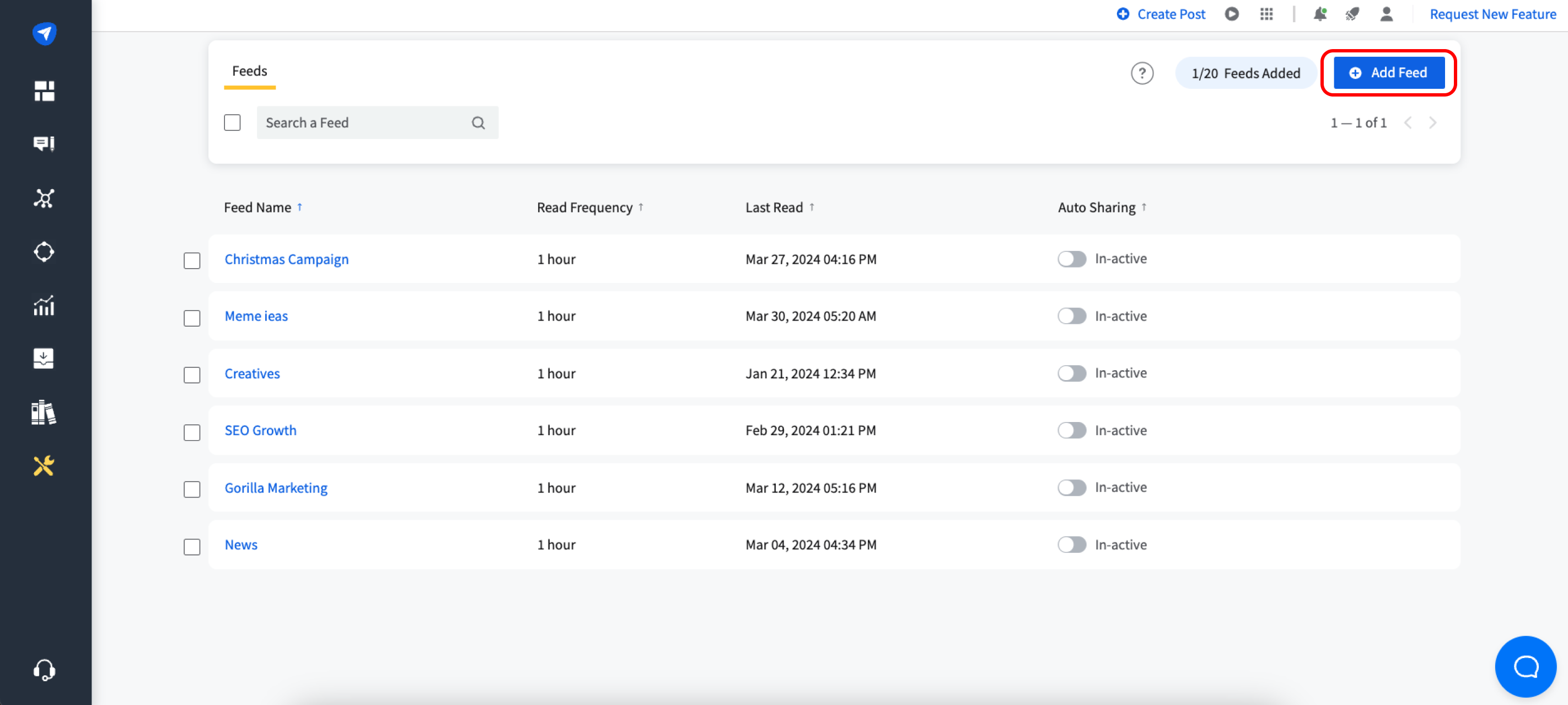 Click on the Add Feed button. This will take you to the Add Feed page.